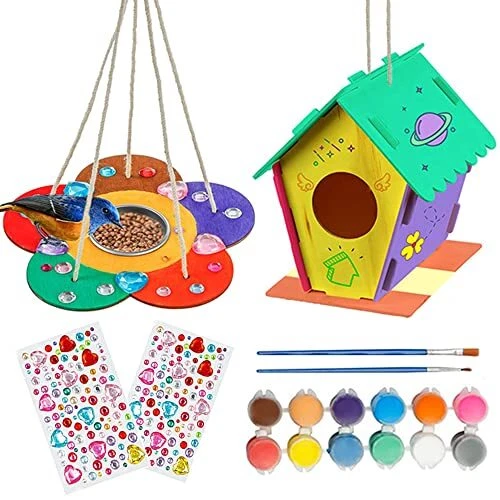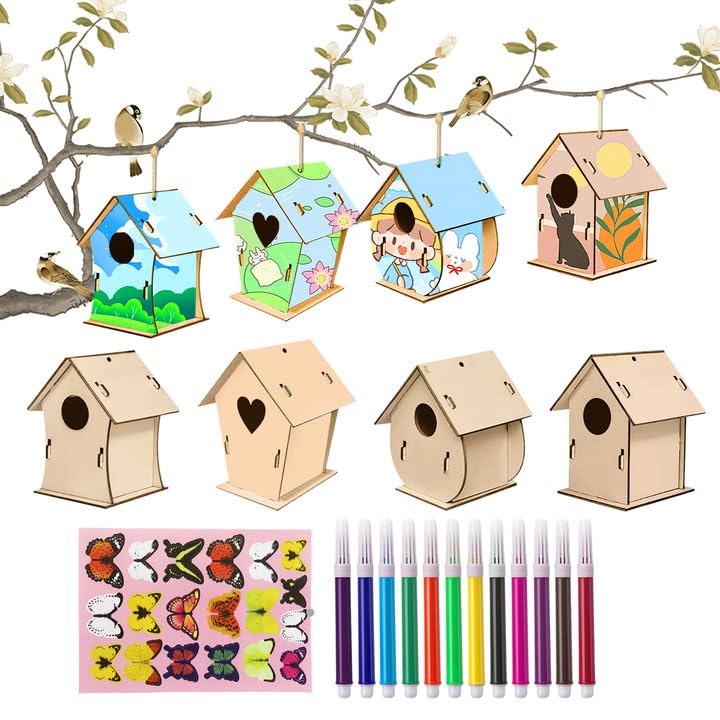 Dieses 6er-Set Vogelhaus-Bausätze ist ein Riesenspaß für kreative Kinder! Aus hochwertigem Buchsbaumholz gefertigt, sind die Häuschen robust, ungiftig und für Innen- und Außenbereich geeignet. Jedes Haus besteht aus 7 vorgefertigten Teilen - super einfach zusammenzubauen. Im Set enthalten: 6 Vogelhäuser, 6 Käfige, 6 Hanfseile, 18 Farben, 2 Pinsel, 2 Kristallaufkleber und 12 Farbstifte. So können die Kids ihrer Fantasie freien Lauf lassen und die Häuschen bunt bemalen und verzieren. Perfekt um Feinmotorik, Kreativität und Naturverständnis zu fördern. Die fertigen Kunstwerke können im Garten, auf dem Balkon oder im Zimmer aufgestellt werden. Ein tolles Geschenk für Geburtstage, Weihnachten oder Ostern - pädagogisch wertvoll und mega unterhaltsam!