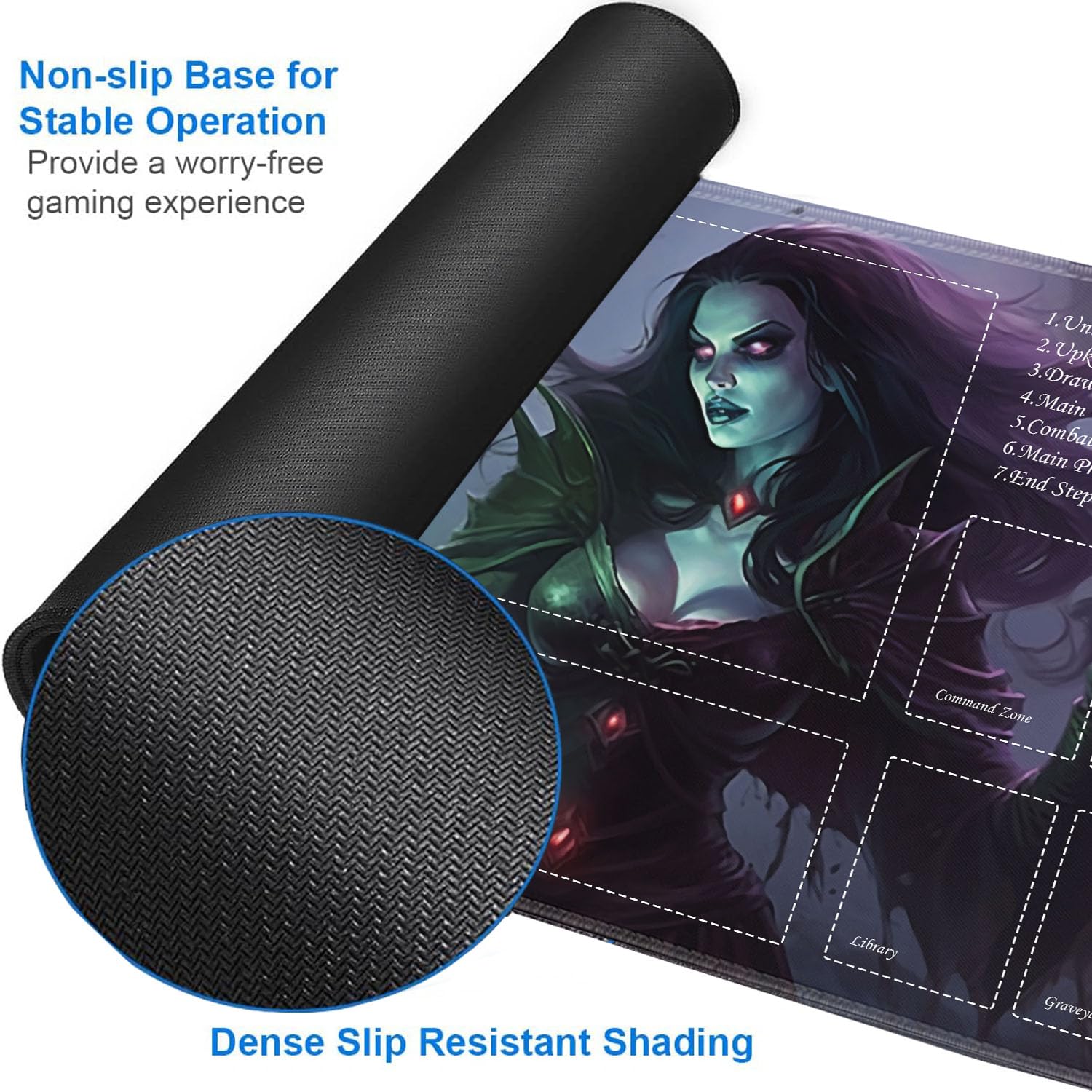 Hey, für den nächsten Magic-Abend ist diese Spielmatte genau das Richtige! Mit den Maßen 61x35,6 cm bietet sie genug Platz für dein gesamtes Deck und mehr. Das Skelett-Kuss-Muster sieht einfach mega cool aus und kommt richtig gut zur Geltung. Die Oberfläche aus Polyester ist super glatt - da gleiten die Karten nur so drüber! Und die Gummirückseite verhindert, dass die Matte verrutscht, selbst bei hitzigen Duellen. Im Lieferumfang ist sogar eine praktische Reisetasche mit Kordelzug dabei - perfekt zum Transportieren und Schutz vor Staub. Plus: 6 Würfelzähler fürs Life-Tracking! Die Kanten sind verstärkt und fransen nicht aus, hält also auch bei viel Gebrauch. Ob für zu Hause, Turniere oder bei Freunden - damit macht Spielen gleich doppelt so viel Spaß. Die Druckqualität ist echt hochwertig, die Farben leuchten richtig. Ein Muss für jeden ernsthaften MTG-Spieler!