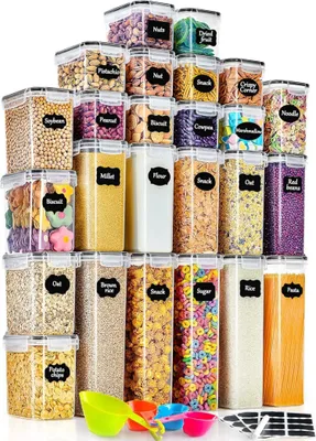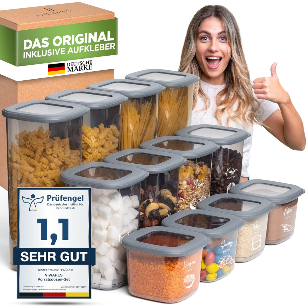 Hey, dieses Ordeluxe Vorratsdosen-Set ist genau das Richtige für deine Küche! 6 praktische Behälter in verschiedenen Größen: 4 große rechteckige Dosen (2,4L, 2x2L, 1,4L) und 2 kleine quadratische (je 0,55L). Perfekt für alles was trocken bleiben soll - Müsli, Cornflakes, Reis, Nudeln oder Snacks. Die großen Dosen haben sogar ne praktische Ausgießfunktion - super einfach zum Dosieren! Die kleinen sind ideal für Kaffeebohnen, Tee oder Gewürze. Alles 100% BPA-frei und lebensmittelecht - da kannst du bedenkenlos deine Vorräte lagern. Die Verschlüsse sind richtig dicht mit Silikonring - da bleibt alles frisch und aromatisch. Und das beste: Die Dosen sind stapelbar! Spart mega Platz im Schrank oder in der Speisekammer. Auch toll für Tierfutter, Bastelsachen oder Bürobedarf. Einfach reinigen - spülmaschinengeeignet. Mach deine Küche endlich ordentlich und organisiert! Die Aufkleber helfen dir den Überblick zu behalten. Ein Must-Have für jeden Haushalt!