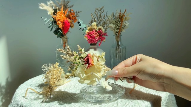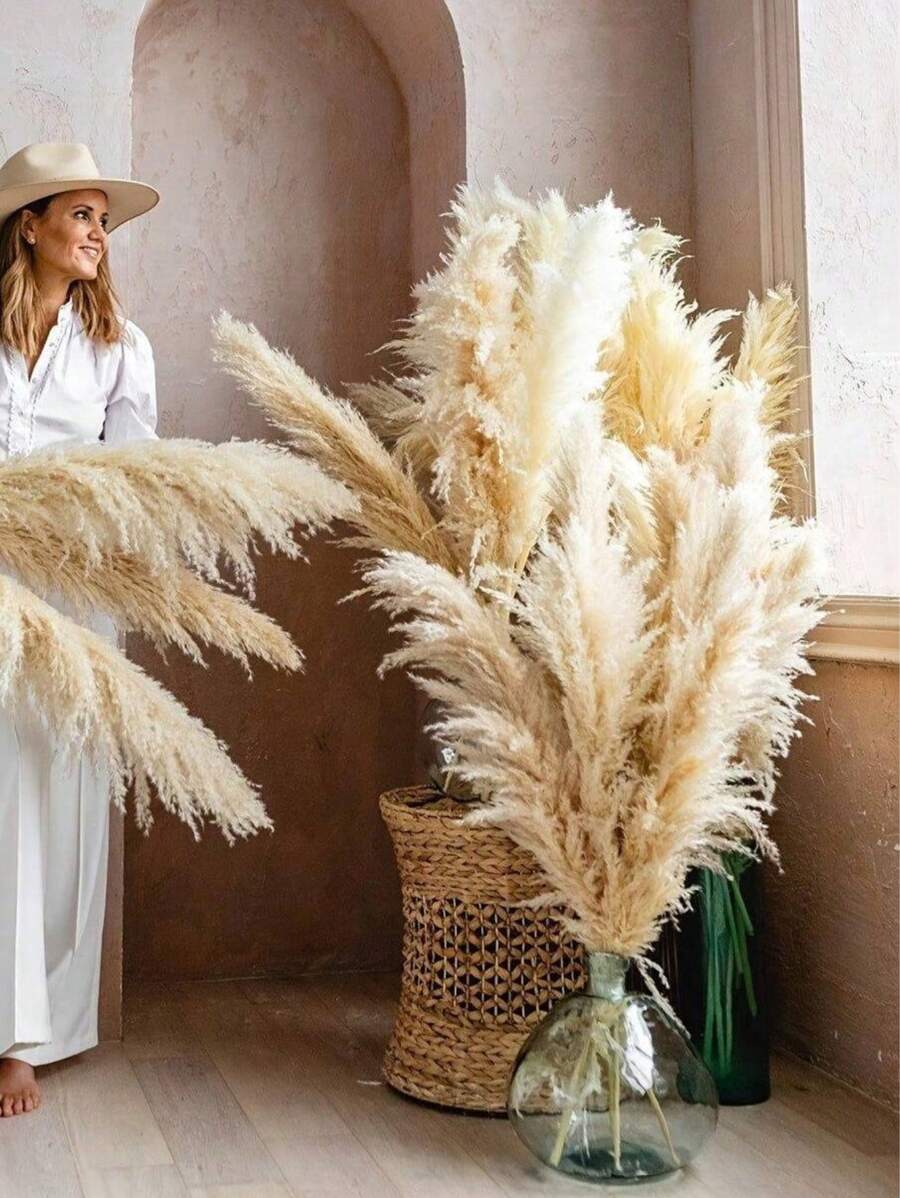 Einfach zauberhaft! Dieses Set mit 6 mini getrockneten Blumensträußen bringt boho-flair in dein Zuhause. Jeder Strauß ist 19-22cm lang und enthält 9 verschiedene Blumenarten - Hasenschwänze, Lavendel, Pampasgras, Billy Balls und mehr! Alles natürlich getrocknet, behält seine schöne Textur und warme Herbstfarben. Perfekt für die Vase auf dem Kaminsims, Esstisch oder Sideboard. Super für Hochzeitsdeko, Partys oder einfach so als hübsche Deko. Du kannst die Sträuße auch auseinandernehmen und neu kombinieren - total flexibel! Kein Gießen nötig, verblüht nicht - hält ewig! Ein wunderschönes Geschenk für jeden Anlass: Geburtstag, Muttertag, Weihnachten oder einfach mal so. Schafft sofort eine gemütliche, romantische Atmosphäre. Einfach hinstellen und sich an der natürlichen Schönheit erfreuen - mehr Aufwand braucht diese Deko nicht!