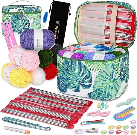 Strick-Fans, hier ist euer Traum-Set! 60 Teile in einer praktischen Tasche: 22 Edelstahl-Stricknadeln (2,0-8,0 mm), 10 bunte Aluminium-Häkelnadeln, Maschenmarkierer, stumpfe Nadeln, Maschenstopper, Schere und Maßband! Die 35 cm langen Stricknadeln sind super glatt und schonen deine Wolle. Perfekt für Socken, Pullover, Decken - was immer du stricken möchtest! Für Anfänger und Profis gleichermaßen geeignet. Alles schön organisiert in der Tragetasche - ideal für unterwegs! Als Geschenk für Strick-Begeisterte einfach perfekt!