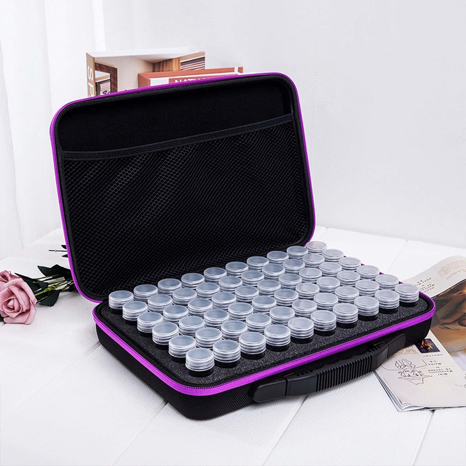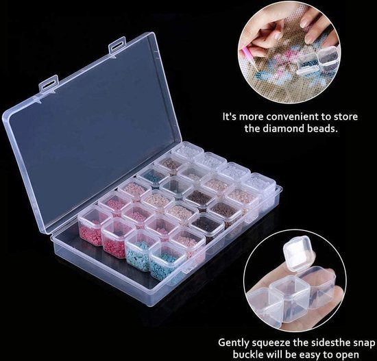 Endlich Ordnung im Diamant-Chaos! Diese 60-teilige Aufbewahrungsbox ist der Traum jedes Diamond Painting Fans. Enthalten sind 60 kleine Drehverschluss-Behälter, die auf einer Schaumstoffplatte perfekt organisiert sind. Jeder Behälter fasst etwa 10g Diamants - genug für selbst große Projekte. Das Set enthält zusätzlich einen 3-in-1 Diamant-Stift (für 3, 6 und 9 Diamanten), 64 Etiketten zum Beschriften, ein praktisches Tablett und Wachs. Die durchsichtigen Deckel verhindern, dass Diamants verschüttet werden, und die Netztasche bietet Platz für weiteres Zubehör. Super für unterwegs oder um endlich alle Farben sortiert zu haben. Ein Muss für alle, die gerne Diamond Painting betreiben - ob Anfänger oder Profi!