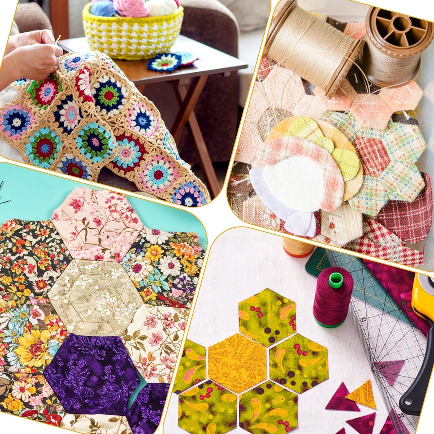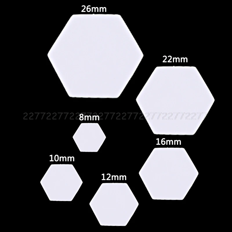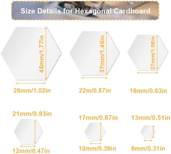 Quilting-Fans, hier ist euer Traum-Set! 600 Hexagon-Papieransetzer in 6 praktischen Größen: 8mm, 10mm, 12mm, 16mm, 22mm und 26mm. Aus stabilem 0,2mm Papier, das sich nicht so leicht verformt - perfekt für wiederholtes Verwenden. Einfach auf den Stoff legen, Nahtzugabe markieren, ausschneiden und die Kanten umklappen. Dann die einzelnen Sechsecke zusammennähen und wunderschöne Muster kreieren! Ideal für Steppdecken, Taschen, Kleidung oder Baby-Accessoires. Fördert die Kreativität und macht Nähen zum Kinderspiel. Mit 100 Stück pro Größe hast du genug Material für mehrere Projekte. Ob Anfänger oder Profi - mit diesen Vorlagen gelingen deine Patchwork-Projekte garantiert!