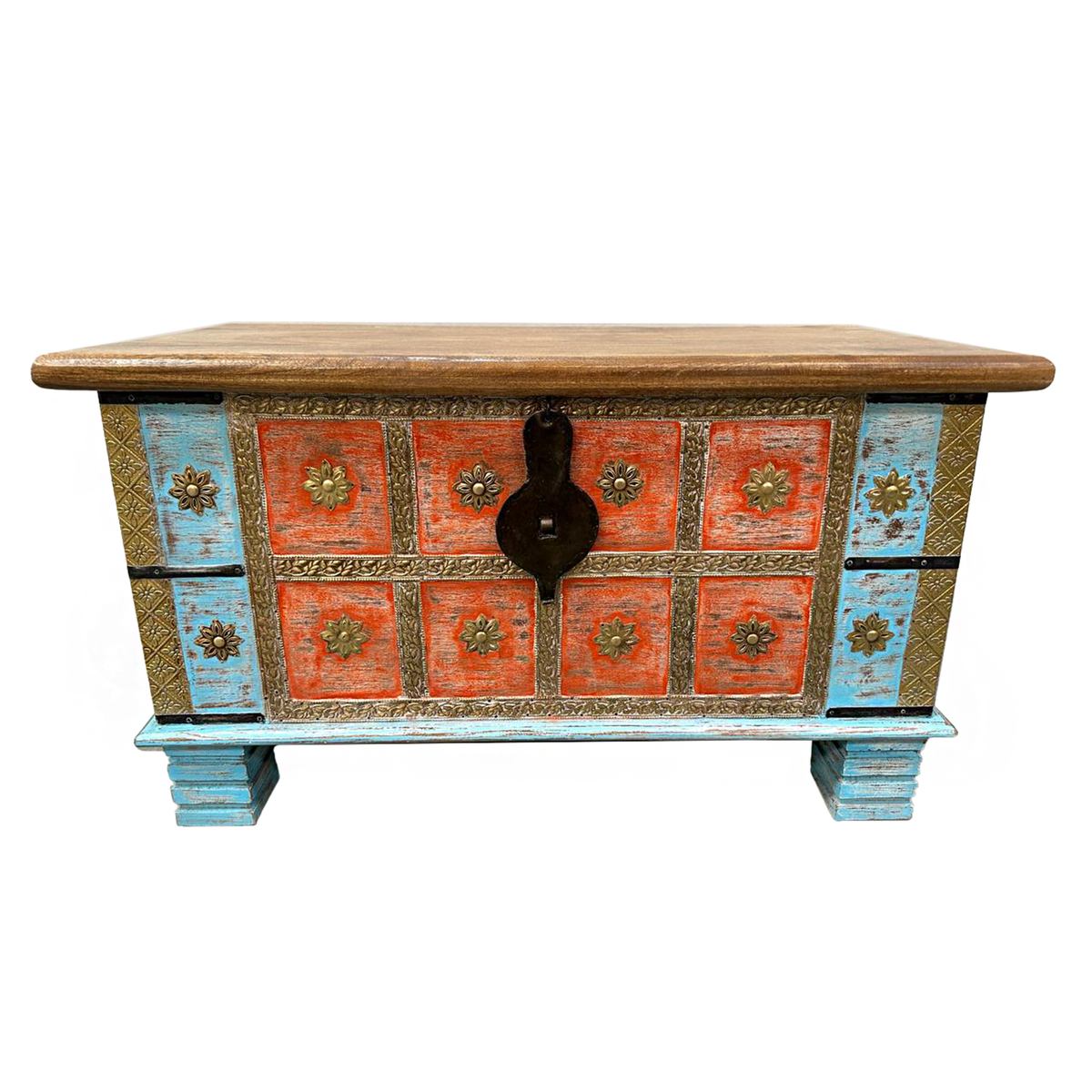 Wow, diese handgefertigte Holztruhe aus Indonesien ist einfach der Hammer! Mit 60cm Breite und 37-40cm Höhe findest du darin Platz für alles Mögliche - ob Schmuck, Decken oder wichtige Dokumente. Die zarten Lotus-Ornamente sind kunstvoll ins Holz geschnitzt und geben der Truhe diesen besonderen Vintage-Charme. Der abgetragene Shabby-Look mit den leichten Farbunterschieden macht jedes Stück zu einem Unikat. Hergestellt aus nachhaltigem Palmenholz, ist diese Truhe nicht nur praktisch, sondern auch ein richtiger Hingucker in deinem Zuhause. Perfekt fürs Wohnzimmer, Schlafzimmer oder als stylische Aufbewahrung im Flur. Jede Truhe wird in liebevoller Handarbeit gefertigt, deshalb gibt es kleine Unregelmäßigkeiten - das macht sie aber erst so besonders! Wenn du nach was echtem und nicht nach Massenware suchst, bist du hier genau richtig.