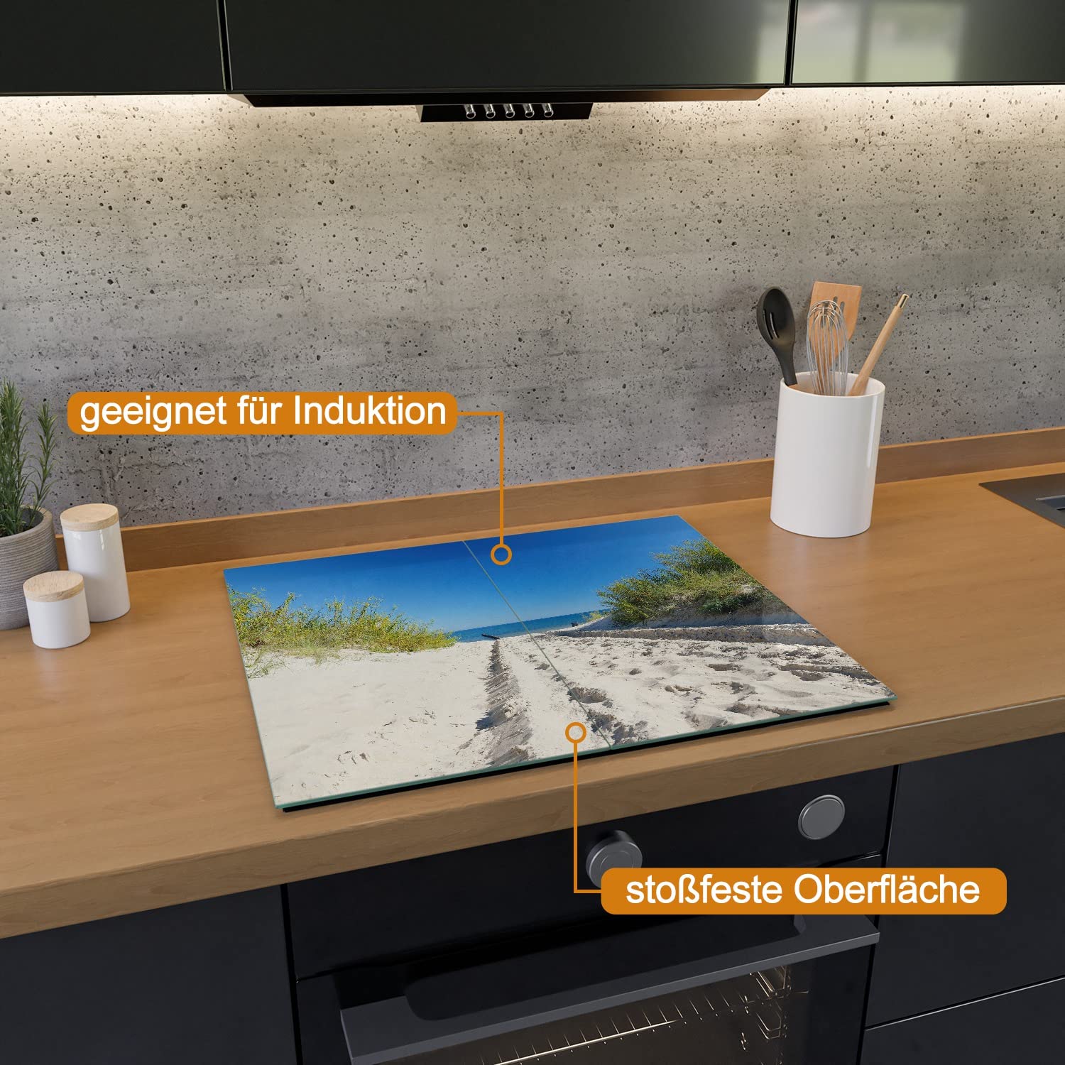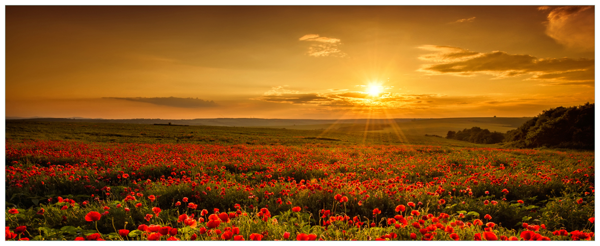Verwandle deine Küche in ein Kunstwerk! Diese 2-teilige Herdabdeckplatte aus 4mm Sicherheitsglas zeigt eine traumhafte Mohnblumenwiese bei Sonnenuntergang. Maße: 60x52cm, perfekt für die meisten Ceran- und Induktionsherde. Mit rutschfesten Gumminoppen für sicheren Halt. Einfach zu reinigen - einfach feucht abwischen. Das Motiv ist dauerhaft hinter Glas geschützt. Auch als Spritzschutz verwendbar. Wichtig: Nur auf ausgekühlten Herden verwenden! Prüfe bei Touch-Steuerung vorher die Kompatibilität. Mach deine Küche zum absoluten Hingucker!