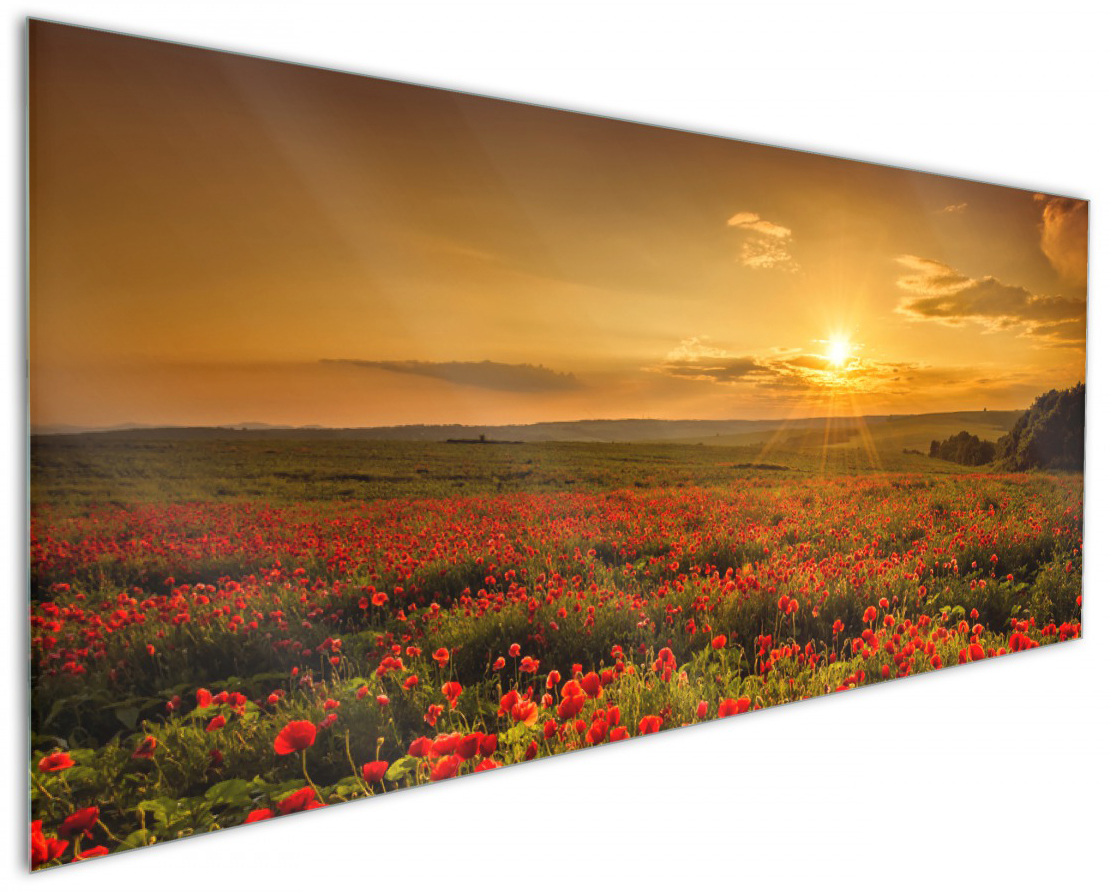 • Wallario Herdabdeckplatte Aus Glas 60x52cm - Motiv Mohnblumenwiese Bei Sonnenuntergang