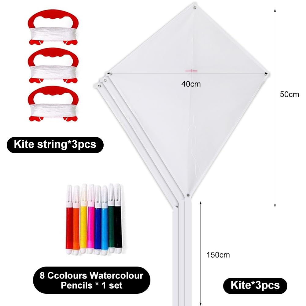 3 Drachen Set Für Kinder - 60x70cm DIY Bastelset Mit Schnur | Bunte Flugdrachen Für Park & Strand