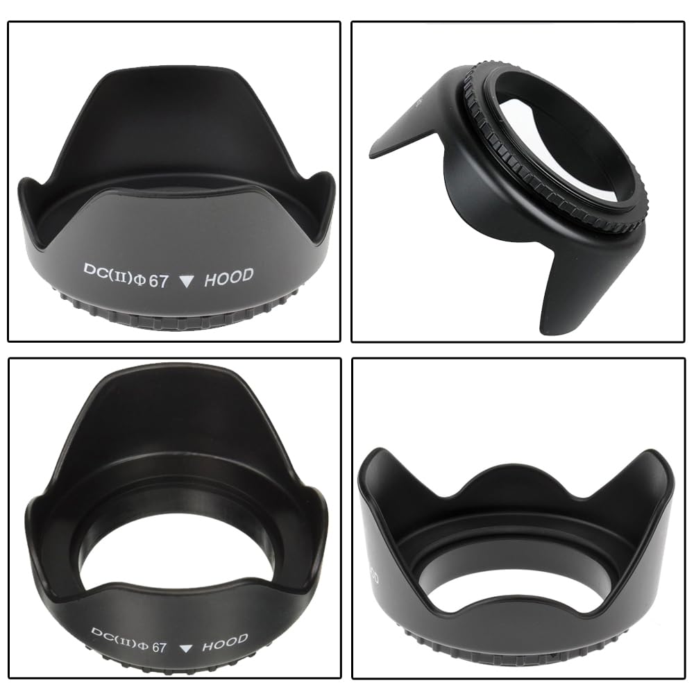 Schütze deine wertvollen Objektive mit dieser 67mm Gegenlichtblende inklusive Objektivdeckel! Perfekt kompatibel mit Canon EF-S 18-135mm, EF 100mm Macro, EF 35mm und vielen mehr. Auch für Nikon AF-S DX 18-105mm, 16-85mm und 70-300mm Objektive geeignet. Die Blende schützt nicht nur vor störendem Seitenlicht und Blendeflecken, sondern auch vor Regen, Staub und versehentlichen Stößen. Der mitgelieferte Objektivdeckel bewahrt dein Objektiv vor Kratzern und Fingerabdrücken. Einfach aufschrauben und deine Fotos werden sofort besser! Aus hochwertigem Kunststoff - leicht und doch robust. Check vor dem Kauf die Objektivgröße (steht meist mit φ67 gekennzeichnet). Ein muss für jeden ambitionierten Fotografen!