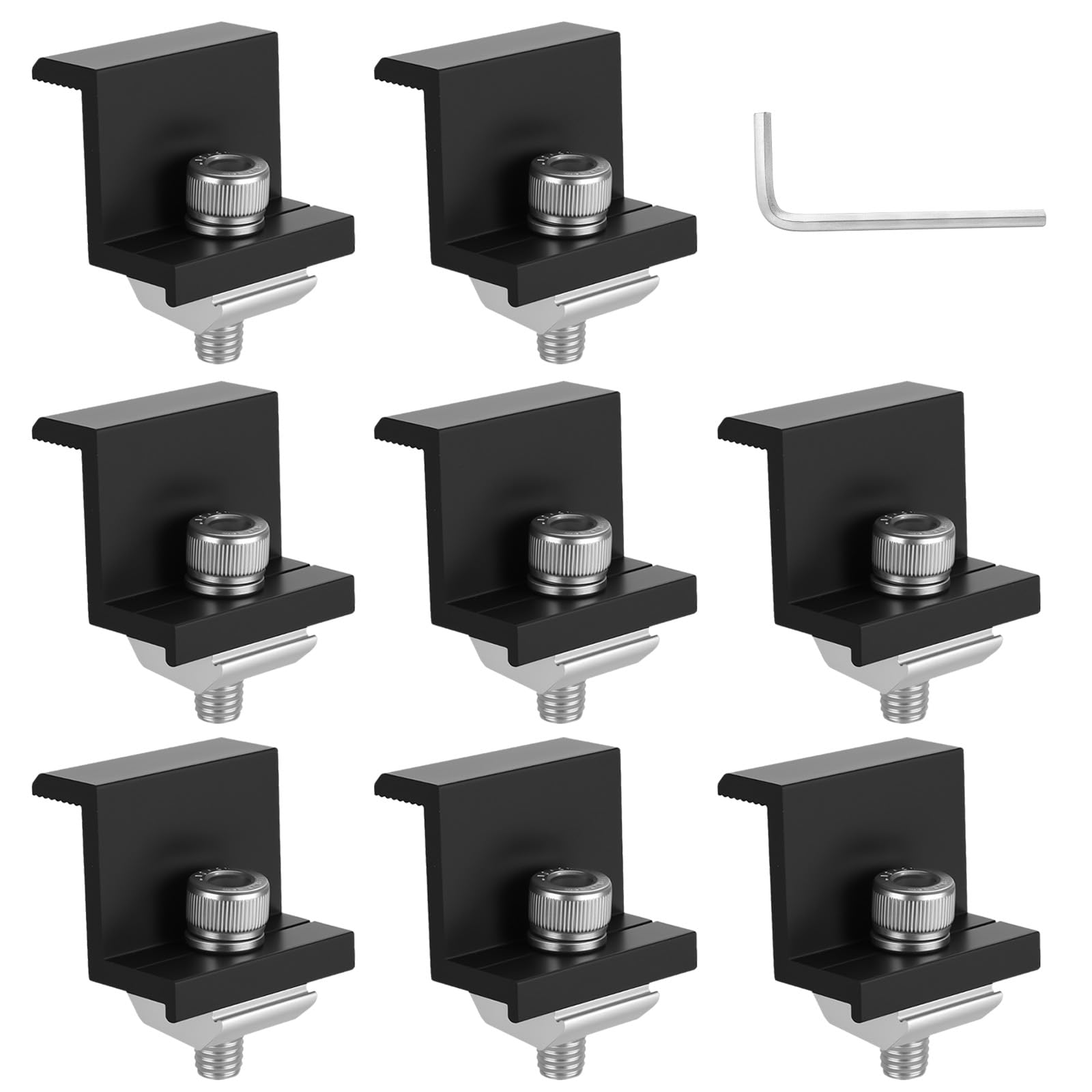 Hey, Solar-Fan! ☀️ Planst du deine eigene Solaranlage? Dann brauchst du auf jeden Fall diese praktischen Endklemmen für deine Solarmodule!\n\nDas Set kommt mit 6 Endklemmen aus robuster Aluminiumlegierung, passend für 30 mm dicke Solarmodule. Die Klemmen sind schwarz eloxiert, korrosionsbeständig und super langlebig – egal ob bei Hitze, Kälte oder Regen!\n\nDas Z-förmige Design sorgt für eine super Wärmeableitung und genug Platz, um die Module sicher an den Schienen zu befestigen. Die Montage ist super einfach: Mit den mitgelieferten Schrauben, Muttern und einem Inbusschlüssel hast du alles, was du brauchst.\n\nEgal ob auf dem Flachdach, Schrägdach, auf dem Boot, Auto oder im Garten – diese Halterungen machen überall eine gute Figur. Sie eignen sich auch super für unebene Oberflächen.\n\nAlso, leg los mit deinem Solar-Projekt – mit diesen Halterungen sitzt alles bombenfest! 🔩