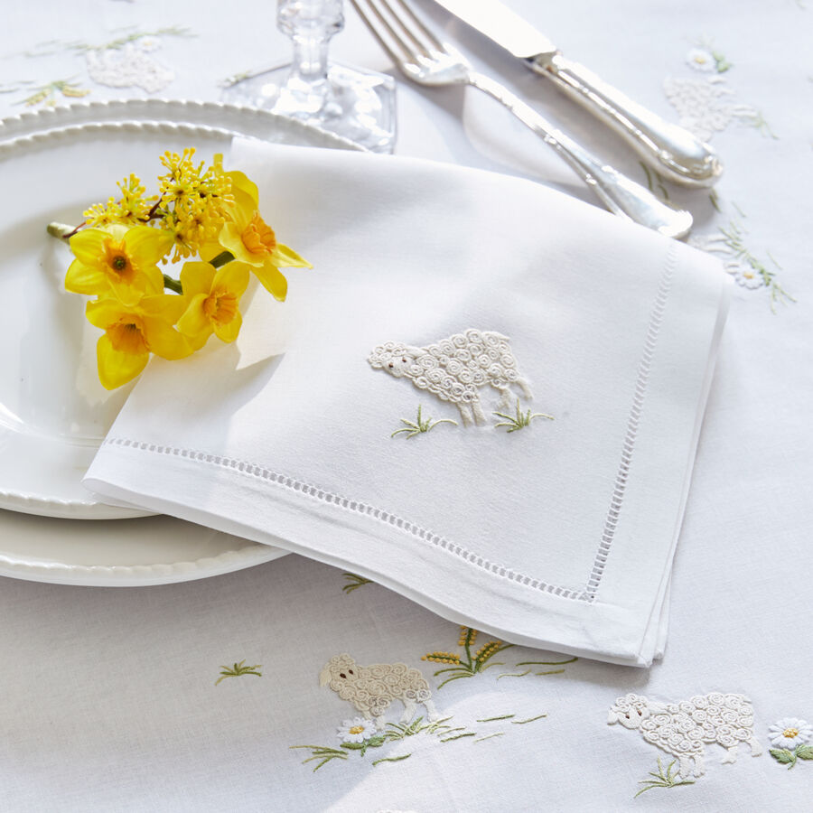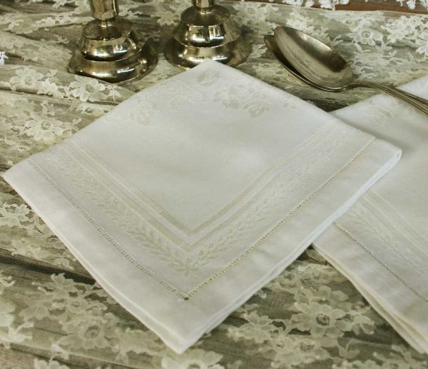 6x Weiße Servietten Mit Hohlsaum - Baumwoll-Servietten Für Party & Hochzeit