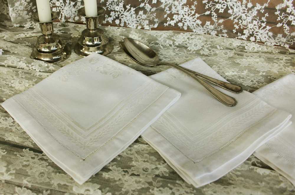• 6x Weiße Servietten Mit Hohlsaum - Baumwoll-Servietten Für Party & Hochzeit