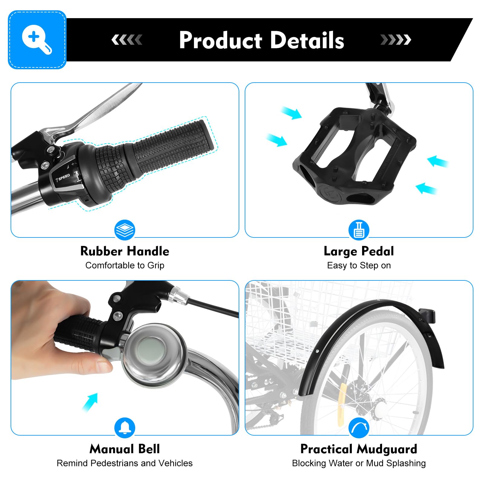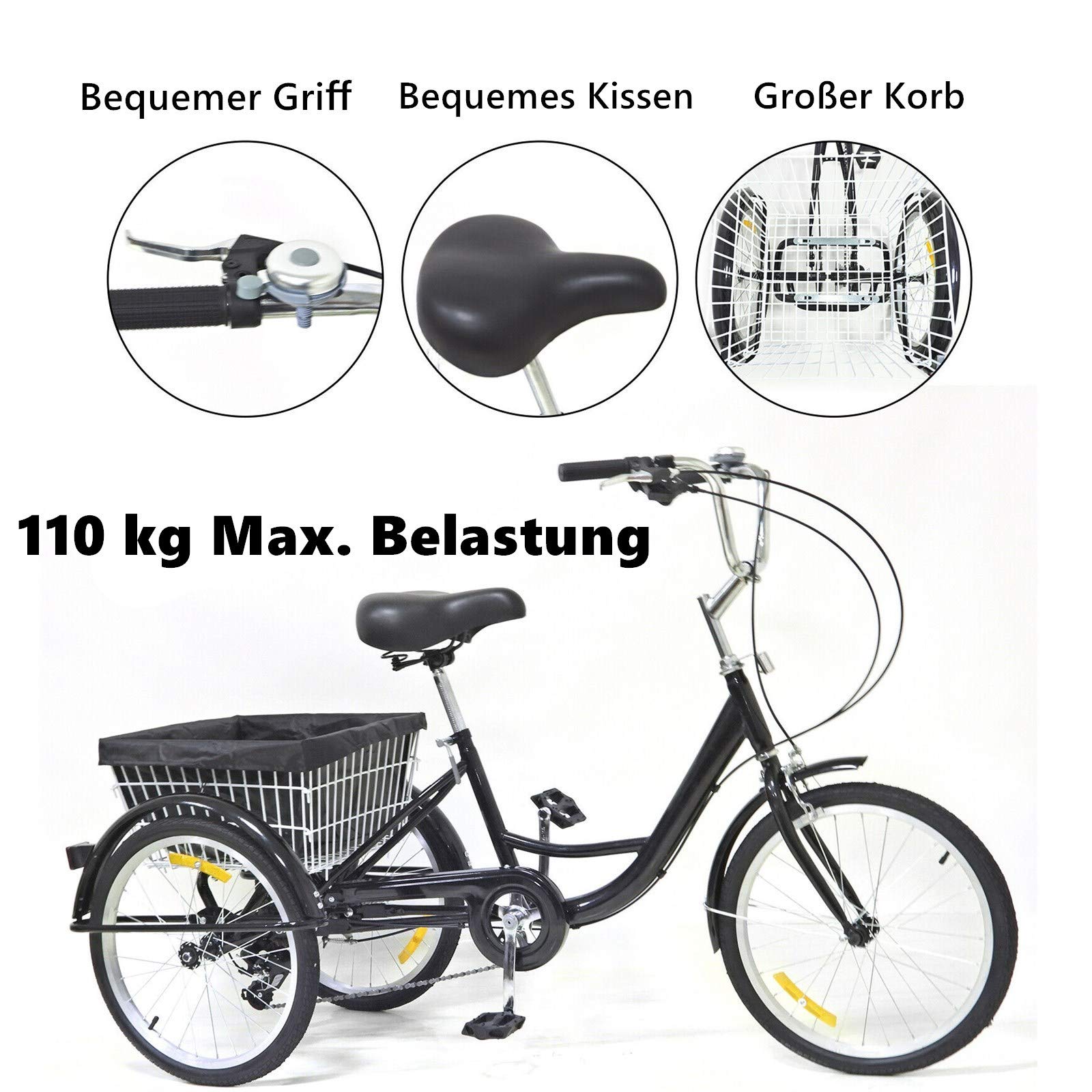 Hey, habt ihr schon mal über ein Dreirad für Erwachsene nachgedacht? Dieses TyochiAki Modell ist super praktisch für Einkäufe, Spazierfahrten oder einfach für mehr Stabilität! Mit 7 Gängen meistert ihr damit jeden Hügel. Der stabile Stahlrahmen hält bis zu 120kg aus - perfekt für die meisten Erwachsenen. Es gibt sogar zwei Körbe: einen vorn (34x20,5x22,5cm) und einen großen hinten (55x46x27,5cm), der 25kg tragen kann. Sitz und Lenker sind höhenverstellbar, sodass ihr von 1,60m bis 1,80m Körpergröße bequem sitzt. Das duale Bremssystem mit Vorderrad-Klammerbremse und Hinterrad-Haltebremse sorgt für totale Sicherheit. Ein bisschen Montage ist nötig, aber mit der beiliegenden Anleitung schafft ihr das!