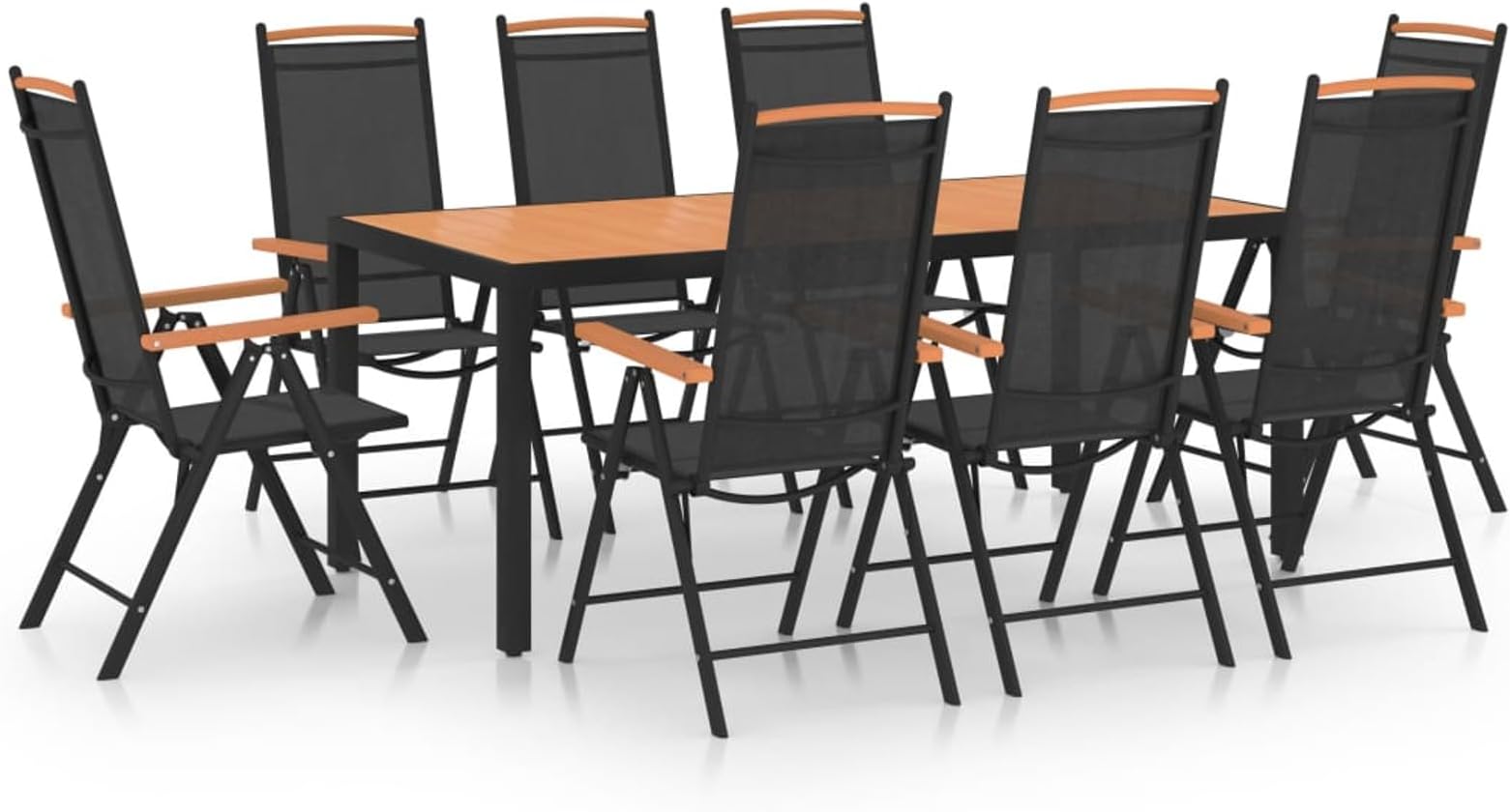 Der Tisch misst 150x90x72cm und bietet reichlich Platz für Speisen und Getränke. Die Stühle sind stapelbar - super praktisch, wenn mal weniger Gäste da sind oder du Platz sparen willst. Das Industrie-Look-Design mit Stahlrahmen ist total im Trend.