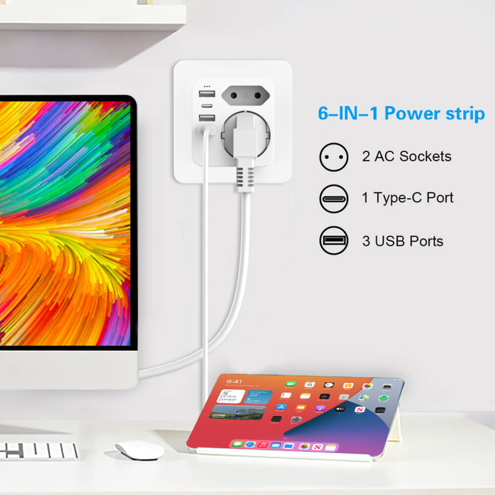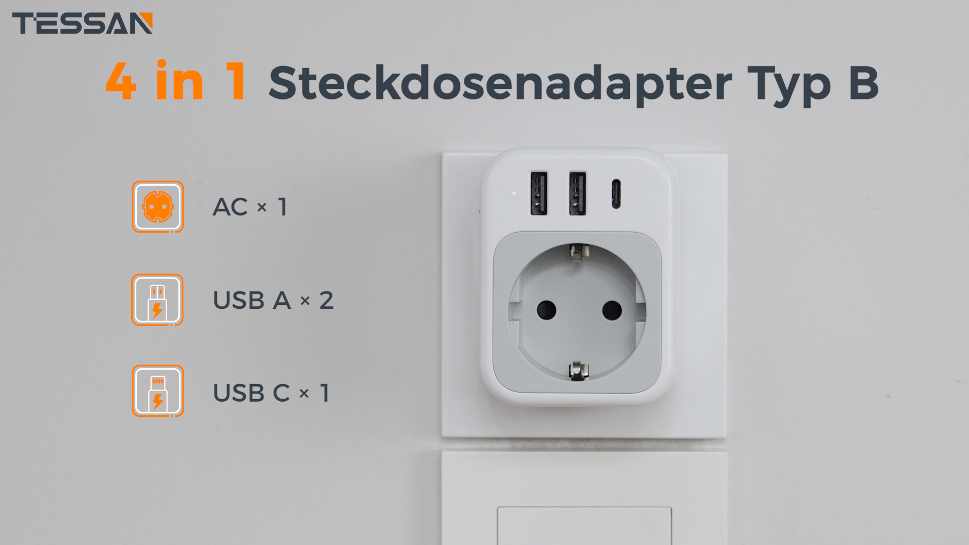 Mit 3 Schuko-Steckdosen und 4 USB-Ports (2x USB-C, 2x USB-A) kannst du bis zu 7 Geräte gleichzeitig laden. Das 1,5m Kabel gibt dir genug Bewegungsfreiheit - super praktisch in Hotels!