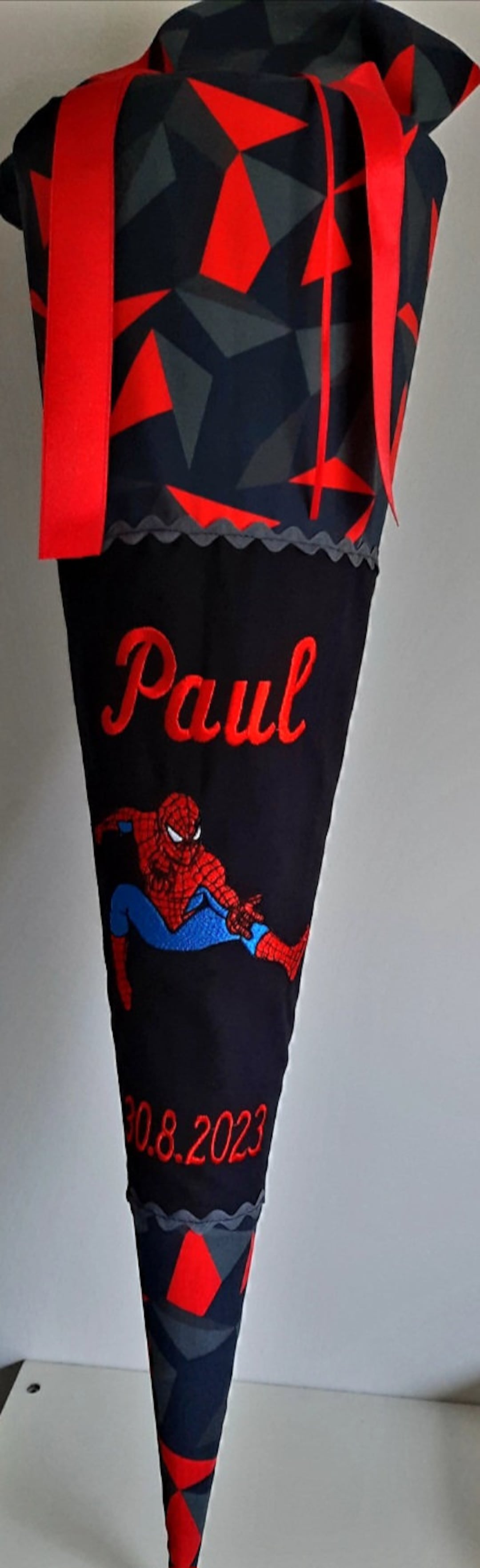 Die perfekte Schultüte für kleine Spider-Man Fans! 70 cm groß, rund und aus stabilem Karton. Mit Filz-Verschluss - sieht einfach klasse aus! Handgemacht und super stabil. Macht die Einschulung zum unvergesslichen Erlebnis. Einfach mit Süßigkeiten und kleinen Geschenken füllen - schwere Sachen nach unten! Die Kinderaugen werden strahlen! Perfekt für den ersten Schultag - ein echter Hingucker!