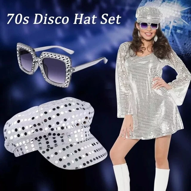 Alter, dieses Disco-Set ist ja der absolute Hammer für jede Party! Komplett mit Pailletten-Hut, glitzernder Sonnenbrille und Ohrringen - du bist sofort der Star auf dem Dancefloor! Der Hut ist aus hochwertigem Stoff gefertigt, sitzt perfekt und ist super bequem. Die Sonnenbrille mit Strass-Details sieht aus wie aus nem echten 70er Jahre Film! Perfekt für Disco-Partys, Geburtstage, Karneval oder Halloween. Aber auch im Alltag macht das Set richtig was her - einfach mal anders stylen! Die Größe passt für die meisten Erwachsenen - keine Sorge mit zu eng oder zu weit. Bringt sofort Abba-Vibes in dein Leben! Super als Geschenk für Freundinnen, Schwestern oder einfach für dich selbst. Einfach anziehen und die Bühne rocken! Absolut empfehlenswert für alle, die Retro-Feeling lieben - macht jede Party zum Event!
