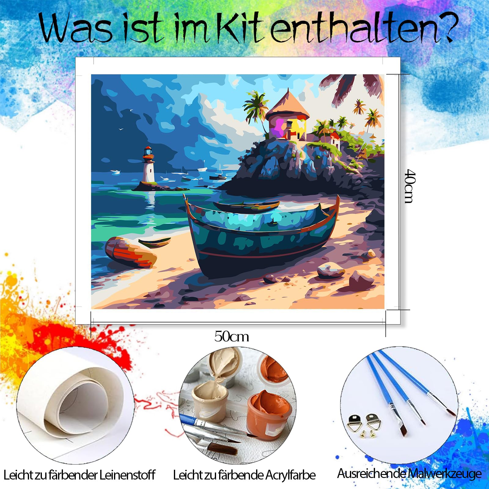 Alles ist dabei: 3 verschiedene Pinsel und Acrylfarben in nummerierten Töpfchen. Einfach die Felder nach Zahlen ausmalen - keine Vorkenntnisse nötig! Perfekt zum Entspannen nach einem stressigen Tag.