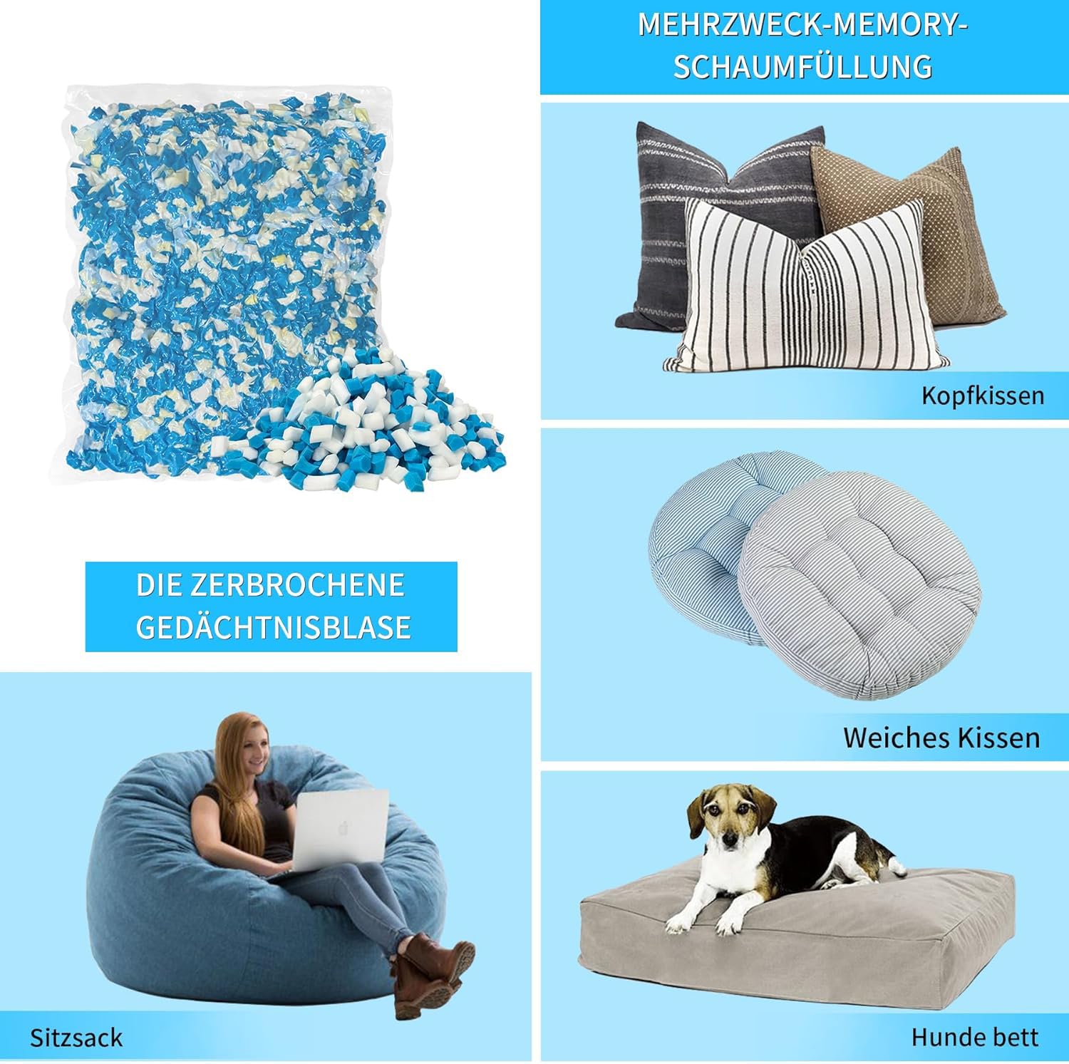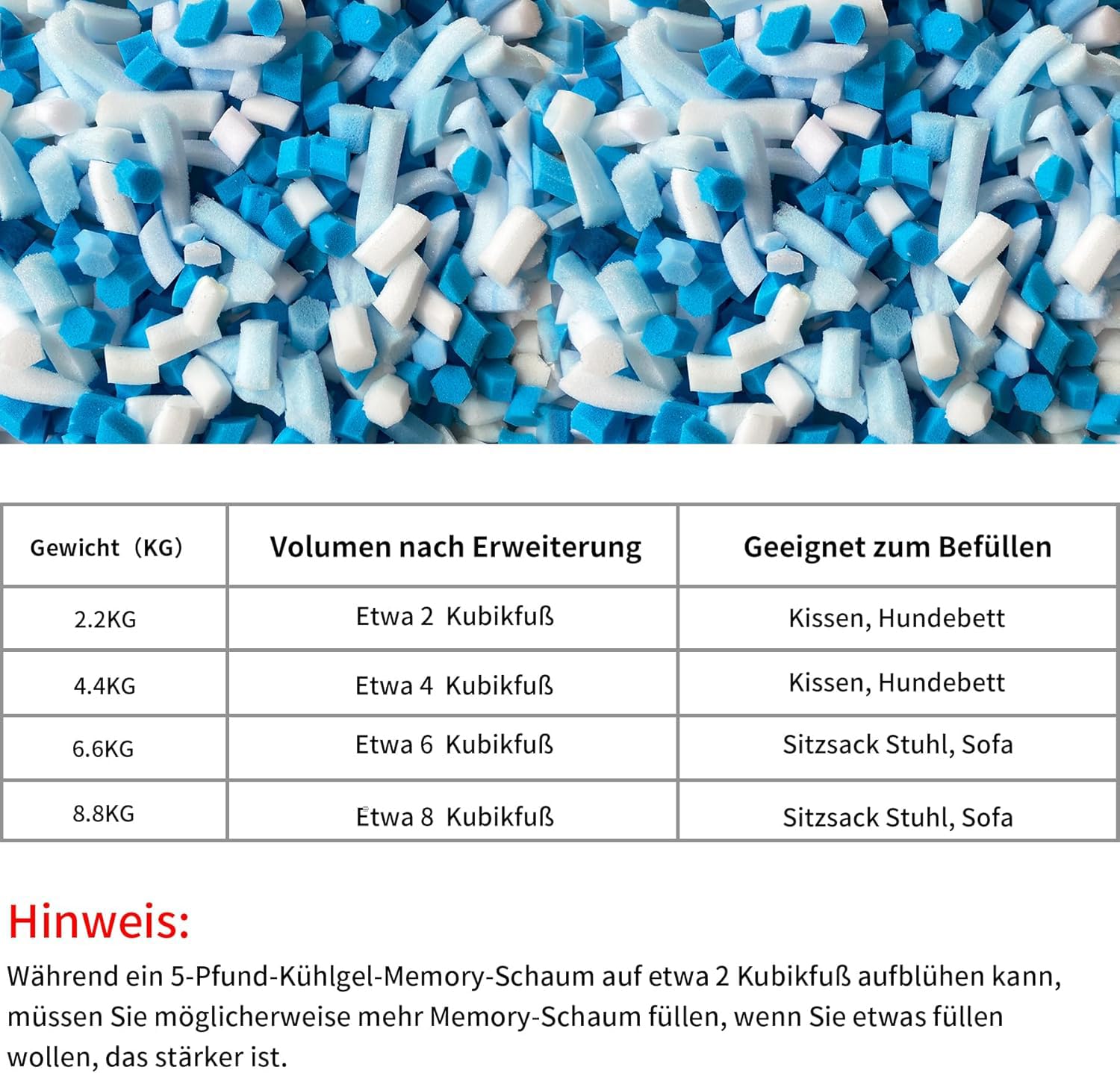 Mach deine Sitzsäcke und Kissen ultra-gemütlich mit dieser hochwertigen Memory Foam Füllung von HONEHO! Die 8.8 kg Packung reicht für mehrere Projekte und ist mit speziellen Gelpartikeln angereichert, die für eine angenehme Kühlung sorgen. Anders als billige Füllungen wird hier der Schaum aus einem Stück geschnitten - keine Klumpen, keine unangenehmen Gerüche! Der Memory Schaum passt sich perfekt an deine Körperform an und sorgt für eine optimale Unterstützung. Perfekt zum Auffüllen von Sitzsäcken, Hundebetten, Sofakissen oder für Bastelprojekte. Die temperaturregulierende Gel-Technologie verhindert, dass dir im Sommer zu heiß wird - trotzdem bietet der Schaum die typische Memory Foam-Weichheit. Wichtig: Die Füllung kommt vakuumverpackt an - einfach in einem geschlossenen Raum öffnen und 24-72 Stunden warten, bis sie sich voll entfaltet hat. Danach hast du einen super-fluffigen und komfortablen Füllstoff, der lange seine Form behält. Egal ob du einen alten Sitzsack wiederbeleben willst oder ein neues Projekt startest - mit dieser Füllung machst du alles richtig. Deine Sitzmöbel werden so bequem, dass du nie wieder aufstehen willst!