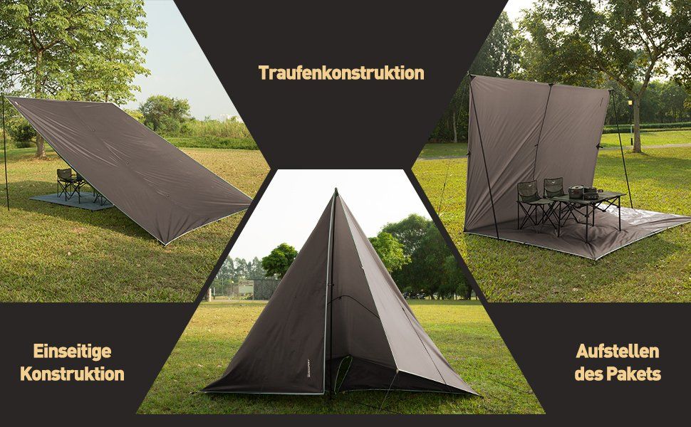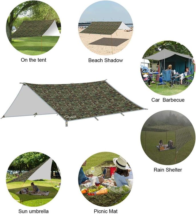 Perfekter Schutz für dein nächstes Outdoor-Abenteuer! Diese massive 8-eckige Campingplane misst stolze 5,6x4,4 Meter und bietet Platz für bis zu 16 Personen. Aus robustem 210T Polyester-Oxford mit 3000 mm wasserdichter PU-Beschichtung hält sie nicht nur jeden Regen ab, sondern schützt auch vor UV-Strahlen mit UPF 99+. Im Lieferumfang findest du alles, was du für den schnellen Aufbau brauchst: 8 Bodennägel, 8 Nylonseile, 2 Hauptstangen à 260 cm, 1 Sekundärstange (240 cm) und sogar nen praktischen Zelthammer. Die Plane wiegt nur 5,4 kg und lässt sich in der mitgelieferten Tasche easy transportieren. Ob als Hängematten-Unterstand, spontaner Schattenspender am Strand oder als Regenschutz beim Picknick - diese Allround-Plane ist dein bester Begleiter für jedes Outdoor-Event. Und das Beste: Die fluoreszierenden Erdspieß sind 19 cm lang und sorgen für bombenfesten Halt!