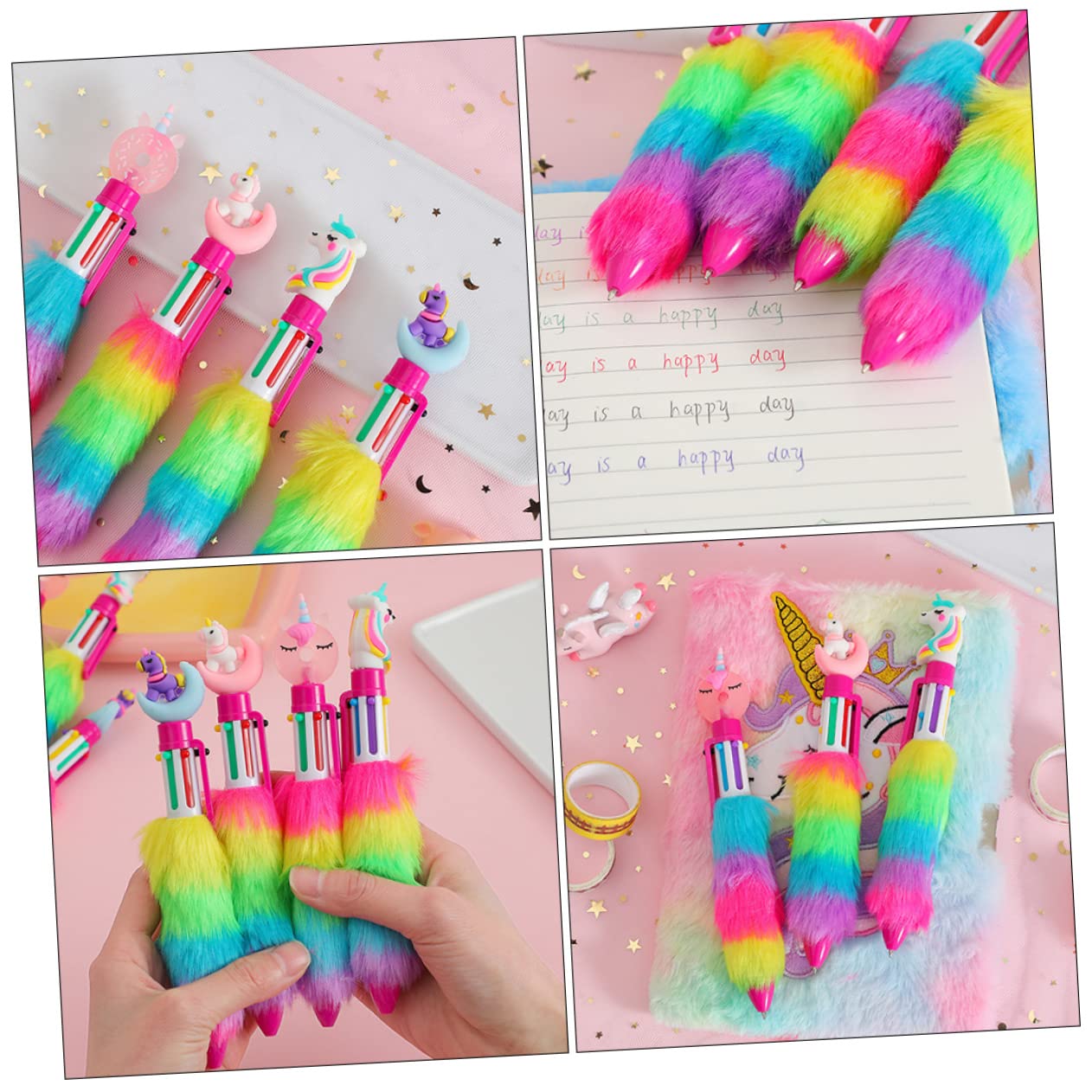 Total niedliche Einhorn-Stifte die Kinder lieben werden! 8 bunte Kugelschreiber mit verschiedenen Einhorn-Kappen - da strahlen Kinderaugen. Jeder Stift hat 4 Farben: blau, rot, grün und grau. Mit 0,5mm Spitze schreiben sie super glatt und hinterlassen keine Flecken. Perfect für die Schule, Hausaufgaben oder einfach zum Malen und Kritzeln. Übrigens: Die Stifte sind nur 9,5cm lang - ideal für kleine Kinderhände. Aus ungiftigem Material und ohne Blei, also vollkommen unbedenklich. Mega als Geburtstagsgeschenk, für die Schultüte oder als Party-Mitgebsel. Macht einfach Spaß damit zu schreiben und motiviert sogar Schreib-Muffel. Einfach perfekt für kleine Künstler und Schulanfänger!