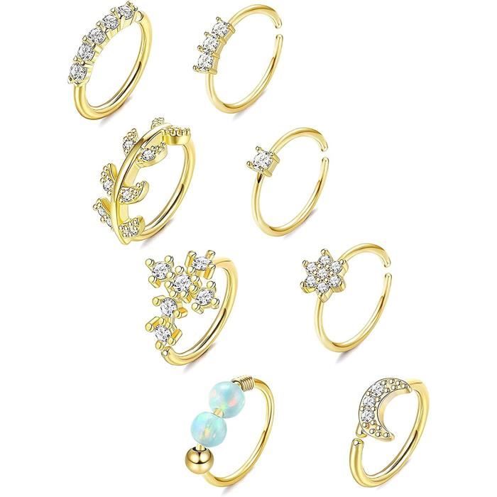 Funkelnd und elegant! Diese 8 Nasenstecker im Set bringen Glamour in dein Piercing. Aus 316L Chirurgenstahl mit 14K Gold-Vergoldung - hypoallergen und super verträglich!