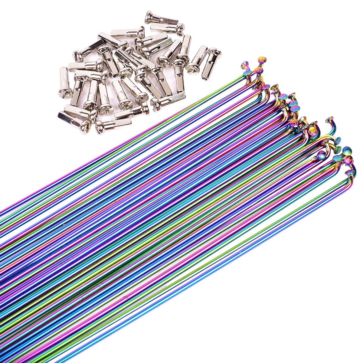 Hochwertige Ersatz-Speichen für dein Fahrrad! Dieses 8er-Set aus rostfreiem Edelstahl (2,0 mm Durchmesser) ist perfekt, um kaputte Speichen an deinem MTB oder Rennrad zu ersetzen. Die bunten Rainbow-Speichen sehen nicht nur cool aus, sondern sind auch extrem stabil und brechen nicht so leicht. Wichtig: Vor dem Kauf unbedingt deine alten Speichen messen, da die Länge von Felge, Nabe und Einspeich-Muster abhängt. Ultraleicht und kompakt, ohne zusätzliches Gewicht für dein Rad. Einfach montieren und dein Laufrad ist wieder perfekt ausgerichtet. Ob für den täglichen Weg zur Arbeit oder für anspruchsvolle Mountainbike-Touren - diese Speichen halten was aus! Besonders praktisch als Notfall-Set für unterwegs. In verschiedenen Längen erhältlich - passend für 26, 27,5 und 29 Zoll Räder.