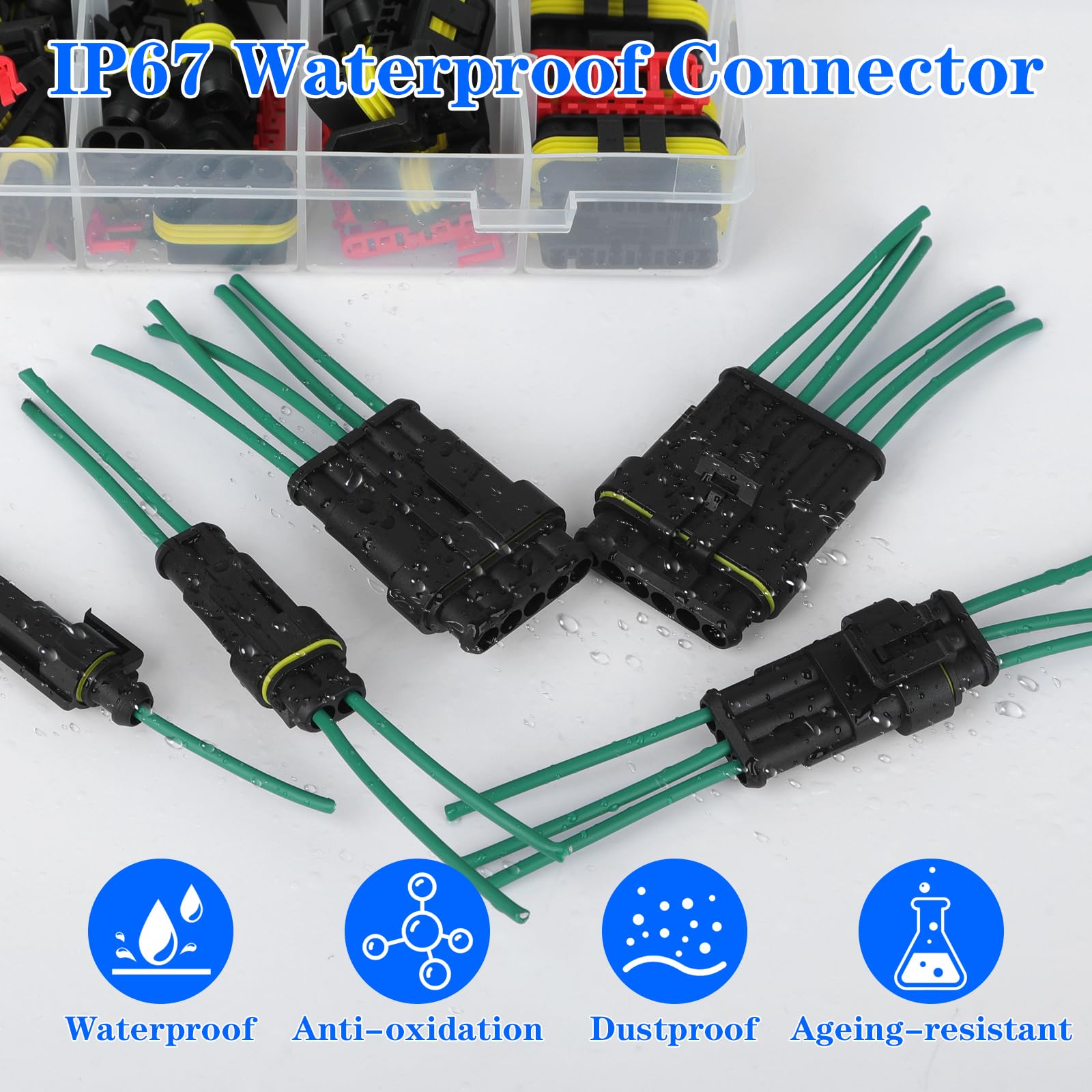 Schluss mit fummeligen Kabelverbindungen! Das QWORK Steckverbinder-Set mit satten 808 Teilen hat für jede Auto-, Motorrad- oder Boot-Elektrik den passenden Stecker dabei. Die Teile sind aus stabilem PA66 Nylon - das Zeug ist flammhemmend und hält auch höhere Temperaturen super aus. Ob 1-, 2-, 3-, 4-, 5- oder 6-polig - hier findest du alles, was du für deine Elektro-Projekte brauchst. Die Stecker sind komplett wasser- und staubdicht, perfekt also auch fürs Motorrad oder Boot, wo's mal nass werden kann. Das Clip-on-Design macht das Anschließen super einfach: Einfach reinstecken, rastet von selbst ein. Kein Löten, kein Kleben - saubere Sache! Im Set sind neben den Steckern auch Klemmen und Gummidichtungen enthalten, also wirklich alles, was du brauchst. Ob du ne Sound-Anlage einbaust, Zusatzlichter montierst oder ne Reparatur machst - mit diesem Set bist du bestens ausgestattet. Die Qualität stimmt einfach und der Preis ist unschlagbar für so ne große Auswahl. Ein Must-Have für jede Werkstatt und alle Hobby-Mechaniker da draußen!