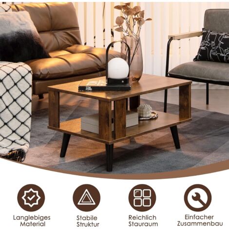 Stylish und praktisch - dieser Couchtisch hat alles! Mit 80×39×48 cm passt er perfekt in jedes Wohnzimmer, Büro oder Schlafzimmer. Die zwei offenen Ebenen bieten Platz für Bücher, Deko oder die Fernbedienung. Aus stabilem MDF und PB-Holz trägt er bis zu 60 kg und sieht dabei im hellen Walnuss-Optik einfach klasse aus. Der Landhausstil mit industriellem Touch passt zu fast jedem Einrichtungsstil. Montage? Kein Problem - in wenigen Minuten steht der Tisch und verwandelt deinen Raum. Endlich mehr Stauraum und dazu noch richtig gut aussehend!