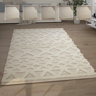 • Paco Home Hochflor Teppich 80x150 Cm - Shaggy Ethno Design In Creme