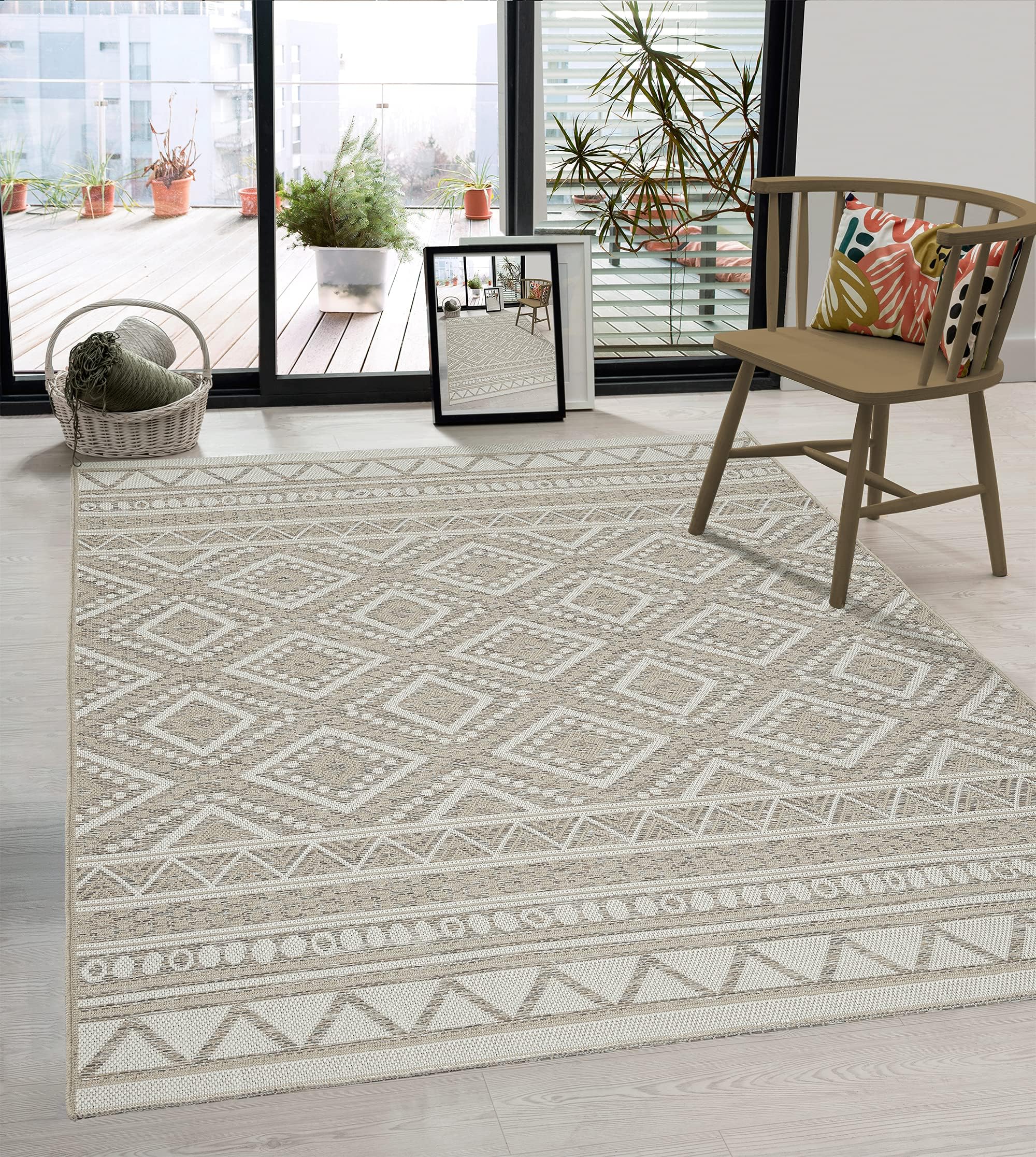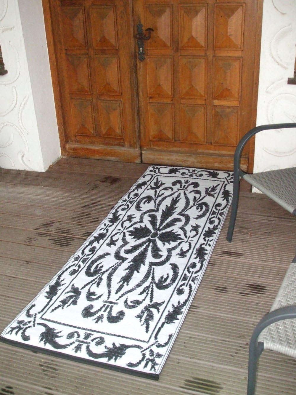 Bring Style auf deine Terrasse oder deinen Balkon! Der Paco Home Outdoor Teppich in Schwarz mit modernem Skandi und orientalischem Kreis-Muster ist ein echter Hingucker. Mit den Maßen 80x200 cm bietet er genug Platz für deinen Sitzbereich. Hergestellt aus 100% Polypropylen mit 1 mm Flor ist er robust, pflegeleicht und schadstoffgeprüft nach STANDARD 100 by OEKO-TEX. Als Flachgewebe ohne Flor ist er besonders ebenmäßig und strukturiert. Perfekt für den Innen- und Außenbereich - ob im Wohnzimmer, Flur oder auf Balkon und Terrasse. Fußbodenheizung geeignet bis 24°C. Einfach zu reinigen, und für Outdoor-Nutzung empfiehlt es sich, ihn regelmäßig aufzuhängen, um Nässe zu vermeiden. Achtung: Neue Teppiche können einen leichten Chemiegeruch aufweisen, der aber in gut gelüfteten Räumen schnell verfliegt. Ein gerollter, sicherer Versand direkt vor deine Haustür inklusive. Dekoriere deine vier Wände mit diesem trendigen und vielseitigen Teppich!