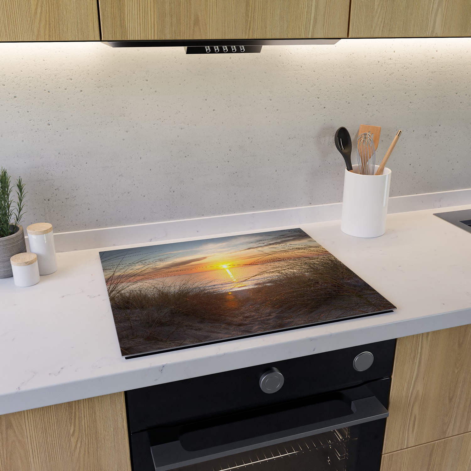 Alter, diese Herdabdeckplatte ist ja mal mega praktisch! Aus 4mm Sicherheitsglas und mit diesem chilligen Palmenstrand-Motiv - da kriegt man direkt Urlaubsfeeling in der Küche. Die ist 80x52cm groß und besteht aus zwei Teilen, super handlich. Nicht nur dass sie euer Ceranfeld oder Induktionskochfeld schützt, nein - sie kann auch als Spritzschutz hinterm Herd stehen oder als zusätzliche Arbeitsfläche genutzt werden. Die rutschfesten Füße mit Gumminoppen sind extra mit dabei. Heiße Töpfe und Pfannen könnt ihr bedenkenlos draufstellen, aber Achtung: Nur auf ausgekühlten Herden benutzen! Reinigen geht easy mit nem feuchten Lappen. Übrigens: Wenn euch das Motiv nicht gefällt, könnt ihr auch ne individuelle Gestaltung anfragen. Made in Germany Qualität - da weiß man was man hat. Perfekt um die Küche aufzupeppen und praktisch zugleich!