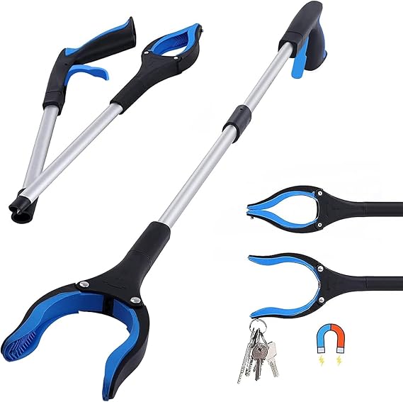 Nie wieder bücken! Diese praktische Greifzange macht das Aufheben von Gegenständen zum Kinderspiel. Ausgeklappt misst sie 81,5cm - zusammengeklappt nur 42cm, also super für unterwegs. Der Greifkopf lässt sich um 360° drehen und die Magnetspitze hilft beim Aufsammeln von Metallteilen. Perfekt für Senioren, Schwangere oder Menschen mit Rückenproblemen. Ob die Fernbedienung vom Boden, Zeitungen oder einfach nur Müll im Garten - mit diesem Helfer sparst du dir das mühsame Bücken. Einfach ausklappen, greifen und freuen! Ein echter Alltagshelfer für mehr Selbstständigkeit.