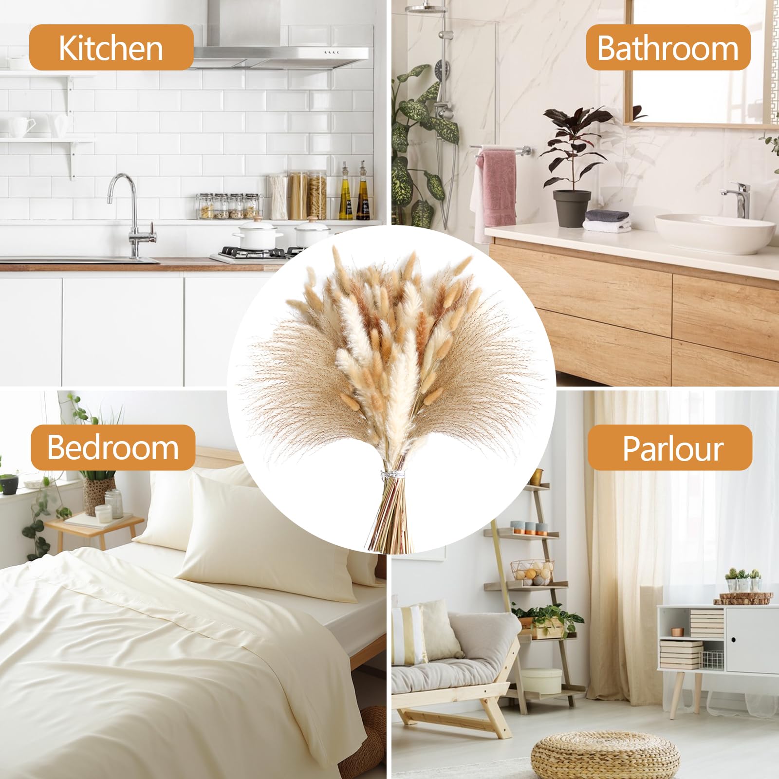 Boah, dieses Pampasgras-Set ist einfach der Hammer! 89 Stück bekommst du hier - das reicht, um deine ganze Bude in 'ne richtig gemütliche Wohlfühloase zu verwandeln. Die Mischung aus braunem und cremefarbenem Pampasgras, fluffigen Bunny-Tails und zartem Schilfgras sieht einfach mega natürlich aus. Perfekt für Hochzeiten im Rustic-Style, aber auch super für dein Zuhause. Egal ob du's in ne Vase stellst, an die Wand hängst oder für nen Tischkranz verwendest - das Zeug macht überall was her! Und das Beste: Die Dinger brauchen kein Wasser und halten ewig. Einfach nach dem Auspacken sonnig hinlegen oder vorsichtig mit dem Fön auflockern, dann entfalten die ihre volle Pracht. Damit kannst du richtig kreativ werden - Girlanden binden, Türkränze basteln oder Geschenke verzieren. Übrigens: Mit bisschen Haarspray fixiert hält die Frisur deiner Deko noch länger. Ist auch 'n super Geschenk für alle, die's natürlich mögen!