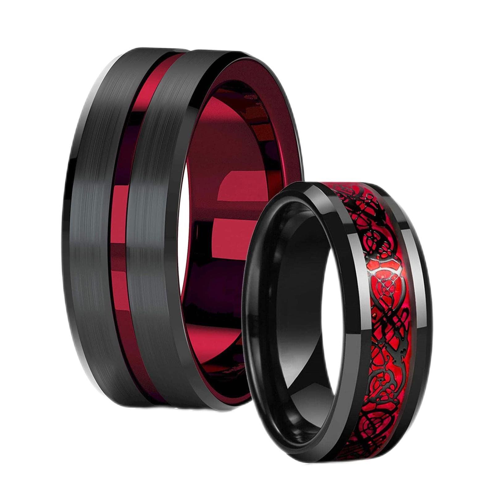 Suchst du einen besonderen Ehering, der was hermacht? Dieser HCMA Ring aus Titanstahl ist ein absoluter Hingucker! Mit 8mm Breite und dem coolen Celtic Dragon Design zieht er garantiert Blicke auf sich. Das Blau-Rot-Kohlefaser-Inlay mit AAA CZ Steinen funkelt super edel. Und das Besondere: Es ist ein Spinner-Ring! Du kannst ihn drehen und damit entspannen - perfekt gegen Stress und Nervosität. Hochwertig verarbeitet, langlebig und farbbeständig. Ideal als Ehering, Verlobungsring oder einfach als stylisches Accessoire für den Alltag. Ein tolles Geschenk für deinen Partner, Vater, Bruder oder Freund. Kombinierbar mit jedem Outfit, ob casual oder business. Mit diesem Ring trägst du nicht nur Schmuck, sondern ein richtiges Lifestyle-Produkt! Also, gönn dir dieses besondere Stück und mach jede Handbewegung zum Statement!