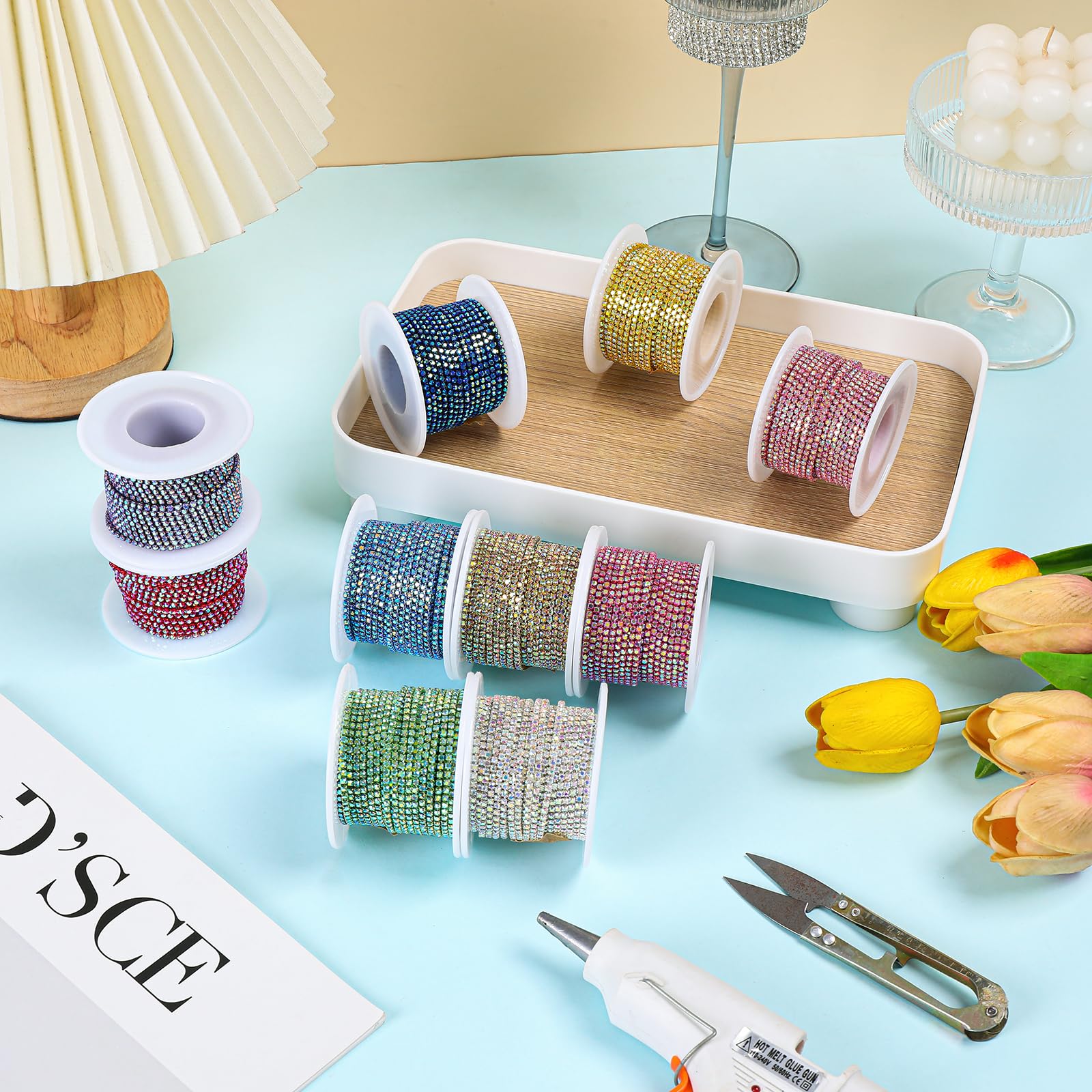 DIY-Fans und Kreative, diese Strass-Kette ist ein wahrer Alleskönner für eure Bastelprojekte! Mit stolzen 9,1 Metern Länge habt ihr reichlich Material für alle eure Ideen. Die einzelnen Strass-Steine haben eine Breite von SS12/3 mm und glitzern fantastisch in hellem Violett. Die hochwertigen Kristall-Strasssteine sind glatt geschnitten, fest eingefasst und super glänzend - sie ziehen sofort alle Blicke auf sich! Die Kette lässt sich ganz einfach mit einer Schere in die gewünschte Länge schneiden. Danach könnt ihr sie either mit Kleber befestigen oder aufnähen - ganz wie es euch am besten passt. Die Anwendungsmöglichkeiten sind schier unendlich: Verziert damit Brautgürtel, Hochzeitskleider, Handyhüllen, Schleier, Torten, Blumenkörbe, Taschen, Kleidungsstücke, Kerzen, Hüte, Vasen und vieles mehr! Die Elektrophorese-Technologie sorgt für eine besonders hochwertige Oberfläche und lange Haltbarkeit. Perfekt für besondere Anlässe wie Weihnachten, Geburtstage, Hochzeiten oder einfach so. Ob für DIY-Schmuck, individuelle Kleidungsstücke oder besondere Dekorationen - mit dieser Strass-Kette verwandelt ihr alles in etwas Besonderes. Sie eignet sich auch super als Geschenk für kreative Freunde oder Familienmitglieder. Lasst eurer Fantasie freien Lauf und erschafft einzigartige Kunstwerke!