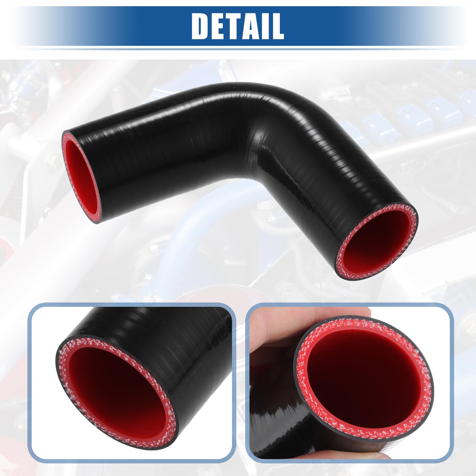 Pass auf, wenn Dein Kühlerschlauch undicht ist oder Du das Kühlsystem optimieren willst! Dieser 90-Grad-Silikonschlauch ist die perfekte Lösung. Mit 38mm Innendurchmesser und 5mm Wandstärke - robust und langlebig. Aus polyesterverstärktem Silikon - hitze- und druckbeständig. Verbessert den Kühlmittelfluss und damit die Motorleistung. Universell passend für die meisten Autos, Motorräder, SUVs und mehr. Einfache Installation - in wenigen Minuten getauscht. In knalligem Blau - sieht auch noch gut aus! Wichtig: Vorher genau messen ob's passt! Nicht für Öl oder Kraftstoff geeignet.