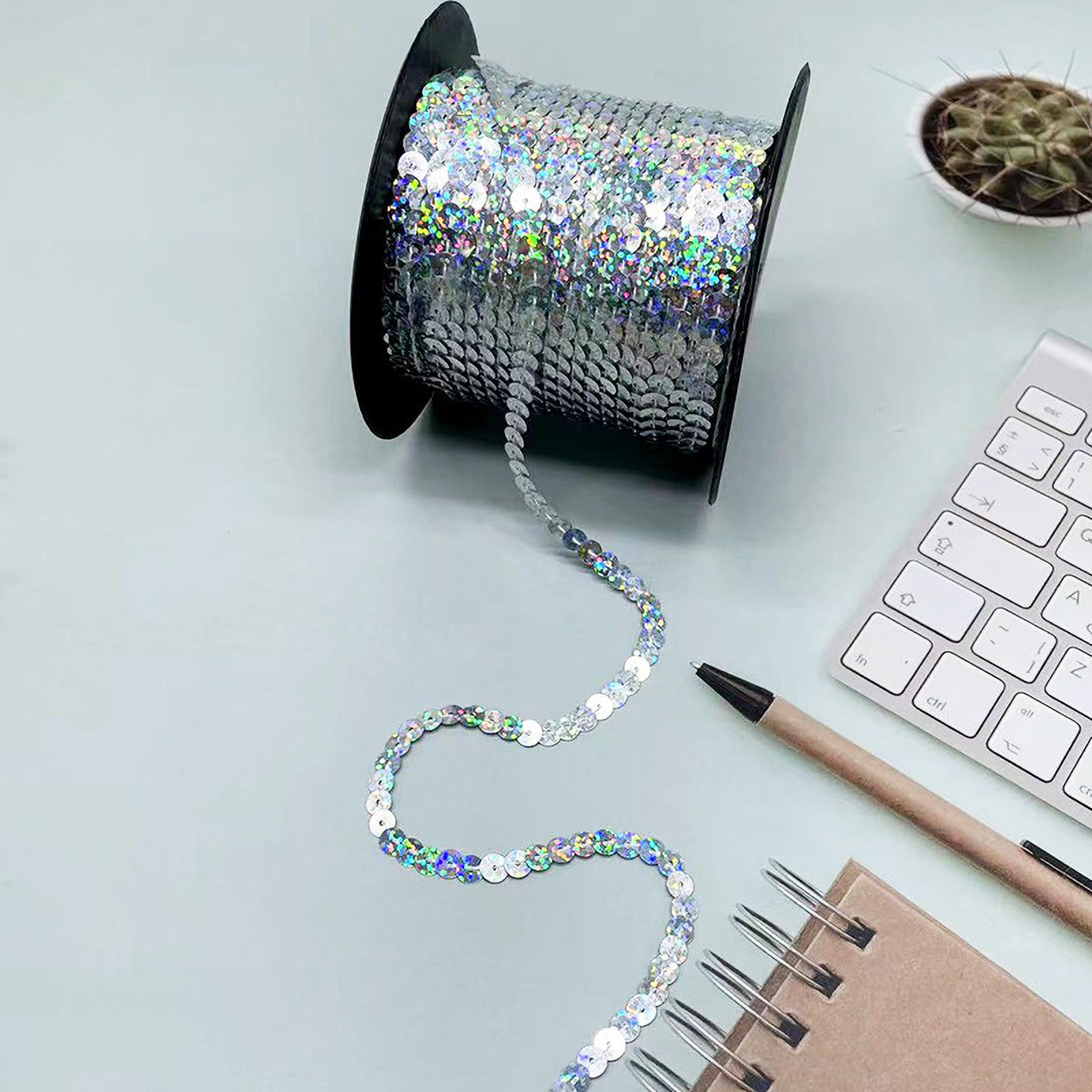 Wow, dieses Paillettenband ist einfach der Hit für alle Bastelfans! Mit stolzen 90 Metern Länge und 6 mm Breite hast du genug Material für deine kreativen Projekte. Das Laser-Blau glitzert einfach mega und fängt jedes Licht ein. Perfekt zum Aufnähen auf Kleidung, Taschen oder für coole Haaraccessoires. Aus hochwertigem PVC, waschbar und super langlebig. Du musst die Pailletten nicht mühsam von Hand auffädeln - das Band ist schon fertig vorbereitet. Einfach zuschneiden, aufnähen und dein Projekt zum Strahlen bringen! Ob für Tanzkostüme, Party-Deko oder individuelle Accessoires - mit diesem Band wird alles zum Eyecatcher. Und das Beste: Es ist komplett ungiftig und unbedenklich für Hautkontakt. Hol dir den Glitzereffekt für deine nächsten DIY-Ideen!