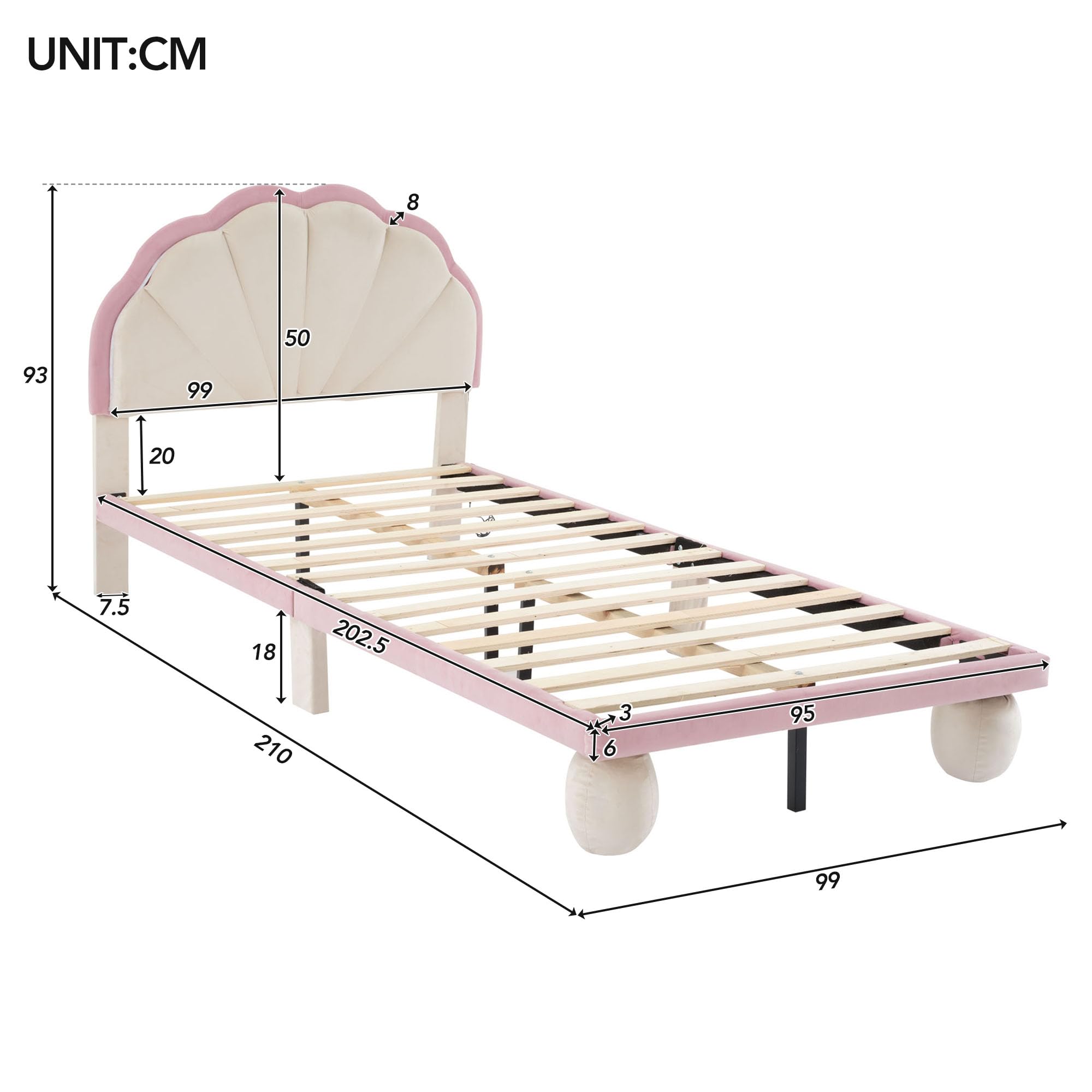 Das Traumbett für kleine Prinzessinnen! Dieses wunderschöne Kinderbett in Rosa/Beige mit Samtbezug verwandelt jedes Zimmer in eine Märchenwelt. Integrierte LED-Lichtleiste mit hunderten Farbwechsel-Modi für magische Atmosphäre. Wellenförmiges Kopfteil und gepolsterte Beine für maximale Sicherheit. Mit robustem Holzlattenrost für optimalen Schlafkomfort. Maße: 210x99x93cm für 90x200cm Matratze. Einfache Montage mit detaillierter Anleitung. Schafft einen einladenden Raum zum Spielen, Träumen und Entspannen. Dein Kind wird dieses besondere Bett lieben!