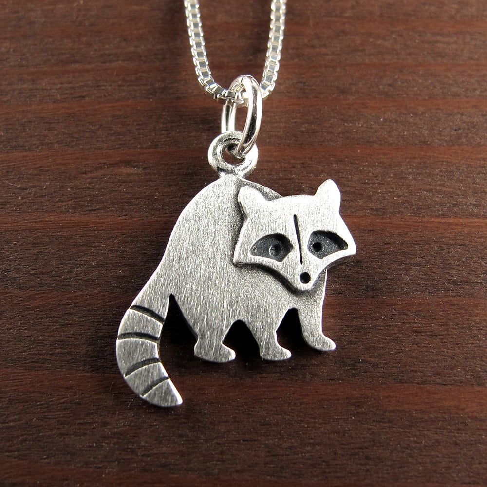 • Waschbär Halskette 925 Sterling Silber - Tier Anhänger Mit Mond Design