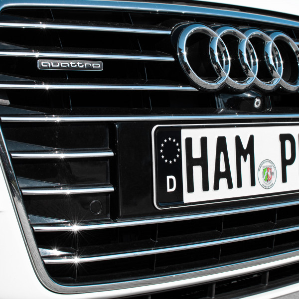 HD-Druck für klare, scharfe Schrift. Abgerundete Ecken wie beim Original. Einfach aufkleben - keine neuen Kennzeichen nötig bei Umzug oder Wechsel.