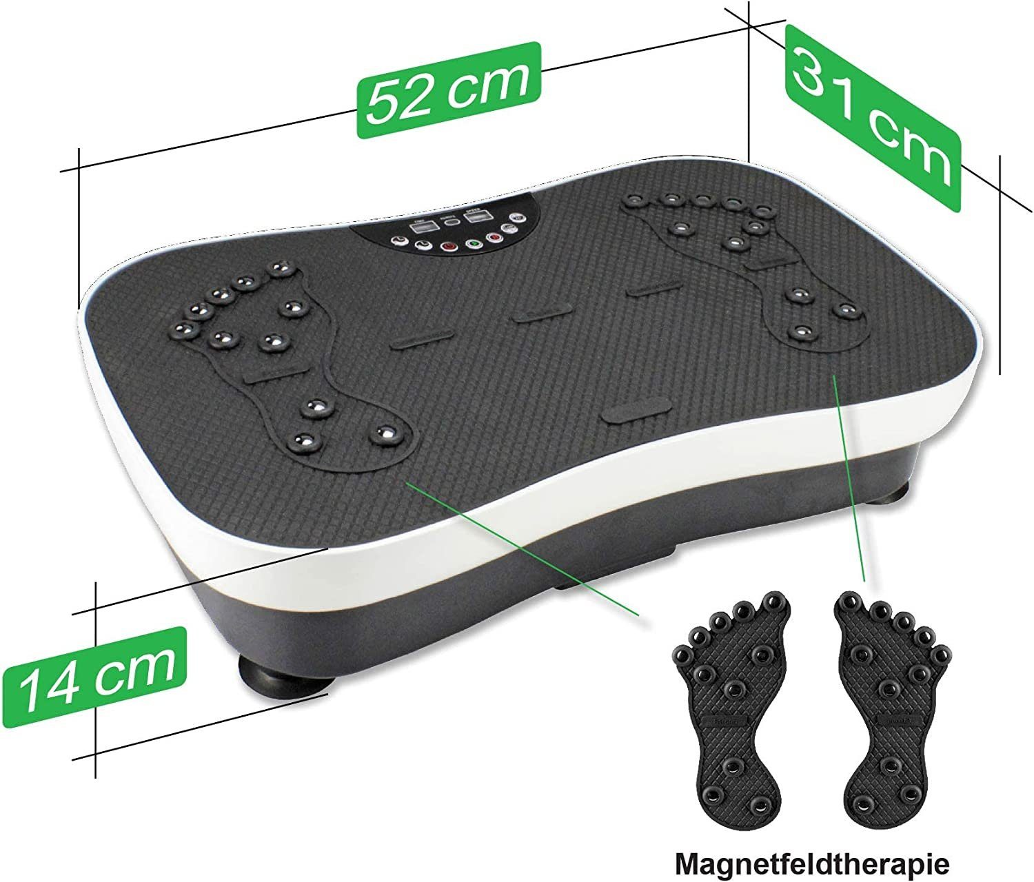 Ganzkörpertraining mal anders! Diese kompakte Vibrationsplatte von HomeFitnessCode bringt Abwechslung in dein Fitnessprogramm. Mit 99 Intensitätsstufen und 8 Vorprogrammen findest du genau die richtige Einstellung für dein Training. Perfekt für Muskelaufbau, Gewichtsreduktion und Cellulite-Reduzierung. Inklusive Springseil und elastischem Zugseil für abwechslungsreiche Workouts. Das klare Touch-Display macht die Bedienung super einfach. Bluetooth-Lautsprecher ermöglicht das Abspielen deiner Lieblingsmusik während des Trainings. Super kompakt und platzsparend - ideal für kleine Wohnungen. Leicht zu transportieren und zu verstauen. Ob morgens vor der Arbeit oder abends vor dem TV - trainiere wann und wo du willst! Für Frauen und Männer gleichermaßen geeignet. Mach dich fit ohne teures Fitnessstudio - diese Vibrationsplatte bringt den Gym-Effekt nach Hause! Starte noch heute dein persönliches Fitness-Abenteuer!