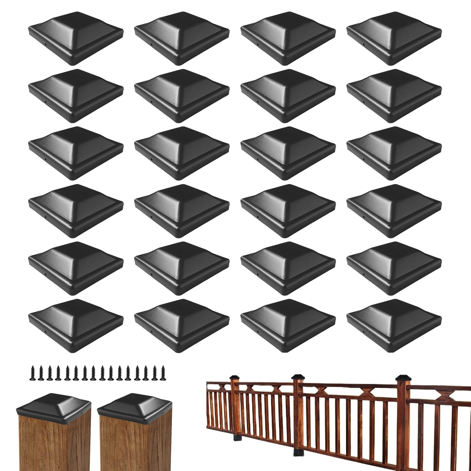 Schütze deine Zaunpfosten mit diesen 24 schwarzen Pfostenkappen! Aus robustem PP-Kunststoff, hitze- und kältebeständig, wasserdicht - perfekt für den Dauereinsatz im Freien. Mit 48 Schrauben für sicheren Halt.