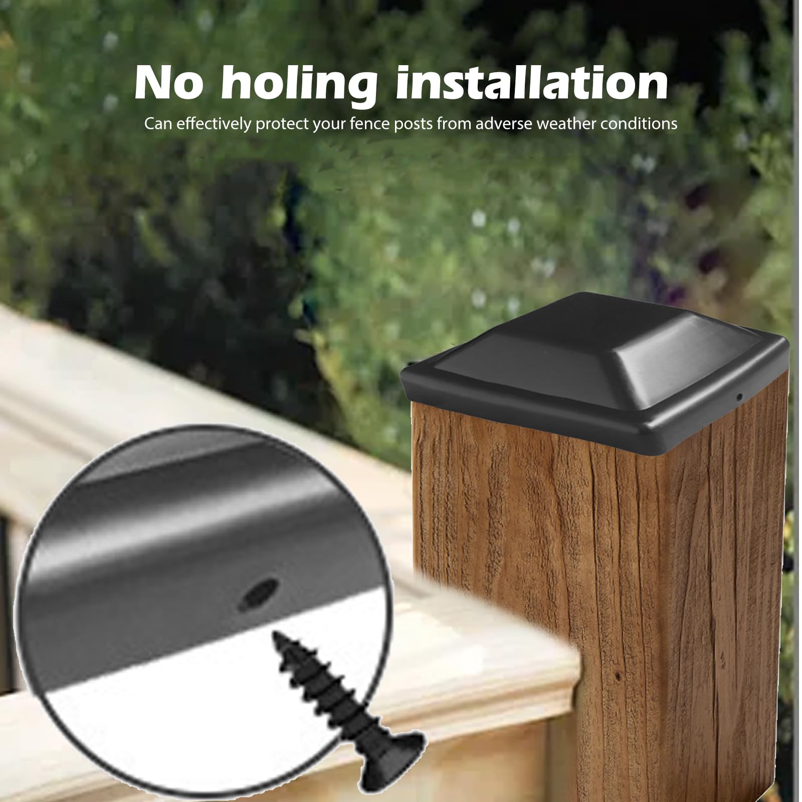 Die 9x9cm Innengröße passt auf die meisten Holzpfosten. Einfach aufsetzen, festschrauben und schon sind deine Pfosten vor Witterungseinflüssen geschützt. Verlängere die Lebensdauer deines Zauns und gib ihm gleichzeitig ein gepflegtes, modernes Aussehen!