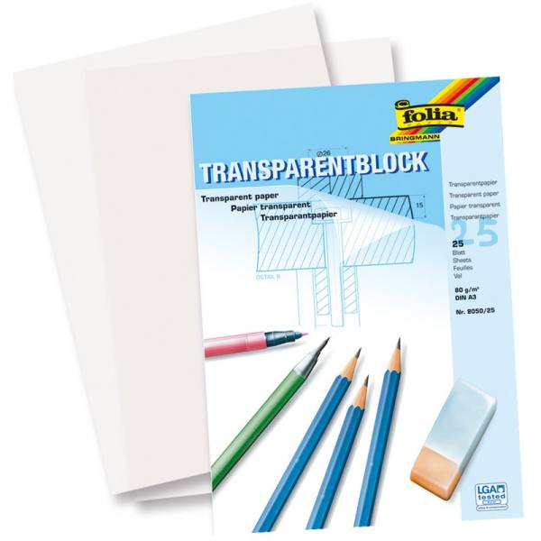Perfekt für kreative Köpfe! Dieser folia Transparentpapier-Block mit 25 Blättern in DIN A3 ist ideal zum Abpausen, Zeichnen und Skizzieren. Mit 80g/qm ist das Papier stabil genug für verschiedene Zeichentechniken, aber dennoch schön durchscheinend.