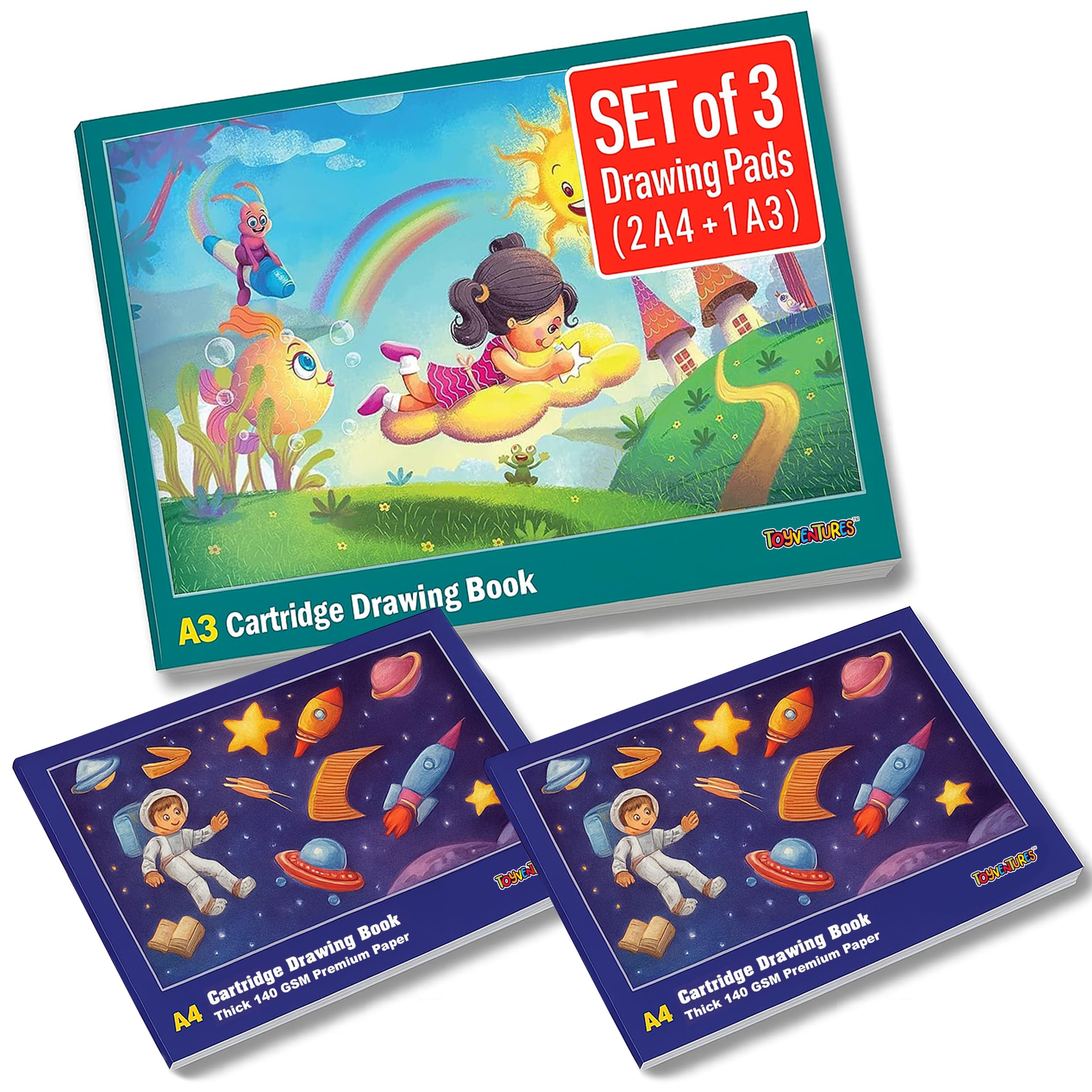 Malen, kritzeln, zeichnen - mit diesen A3 Zeichenblöcken kann deine Kreativität so richtig loslegen! Zwei Blöcke mit je 34 Seiten - da ist genug Platz für alle Kunstwerke. \\n\\nIdeal für: \\n• Kleine Künstler ab 3 Jahren \\n• Hobby-Maler und Zeichner \\n• Professionelle Skizzen \\n• Schulprojekte und Hausaufgaben \\n\\Jede Seite ist schön weiß und unliniert - perfekt für: \\n• Buntstifte und Filzstifte \\n• Wasserfarben und Aquarell \\n• Bleistiftzeichnungen \\n• Collagen und Basteleien \\n\\nTechnische Daten: \\n• Format: A3 (42 x 29,7 cm) \\n• 68 Seiten insgesamt \\n• Umweltfreundliches Papier \\n• Chlorfrei produziert \\n• Starke Bindung - nichts fällt raus \\n\\nDie weichen Einbände sind bunt und fröhlich, und die Blöcke halten auch wildem Malen stand. Perfekt für Kindergarten, Schule oder einfach für zu Hause. \\n\\nSchnapp dir die Stifte und leg los - auf den großen Seiten kannst du dich so richtig austoben!