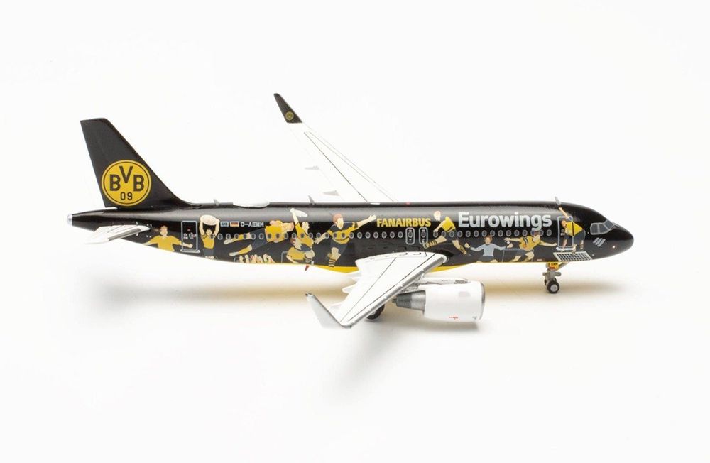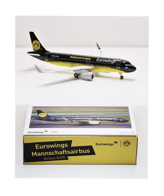 • Herpa Eurowings Airbus A320 Modell - BVB Mannschaftsairbus 1:500