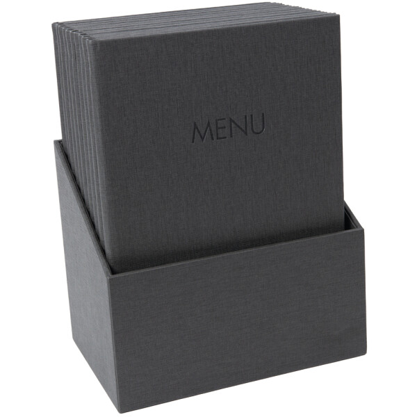 Die Buchschrauben-Bindung sieht nicht nur edel aus, sondern ermöglicht auch einfaches Erweitern und Austauschen der Hüllen. Die Leinenstruktur mit Kontrastnaht gibt ihr das gewisse Etwas. Perfekt für Gastronomie, Hotels oder Events.