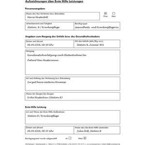 Für alle Betriebe, Schulen und Einrichtungen: Dieses DSGVO-konforme Meldeheft ist Pflicht für die Dokumentation von Erste-Hilfe-Leistungen! Enthält 2 Hefte mit insgesamt 46 Blatt im praktischen DIN A5 Format. Perfekt für den Verbandkasten oder -schrank, damit nicht jeder die Unfalldaten anderer sehen kann. Erfüllt die Vorschriften nach BGV A1 und schützt die Privatsphäre der Betroffenen. Wird täglich bis 14 Uhr bestellt, noch am selben Tag verschickt! Inklusive Download-Rechnung. Einfach ausfüllen und die gesetzlichen Auflagen erfüllen.
