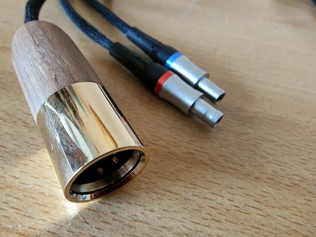 Die Anschlüsse sind richtig edel: Walnussholz-Gehäuse mit vergoldetem Messing. Sieht nicht nur klasse aus, sondern ist auch langlebig. Der Hauptkabel-Durchmesser beträgt 5mm, die Abzweigungen 3,2mm - robust aber flexibel.