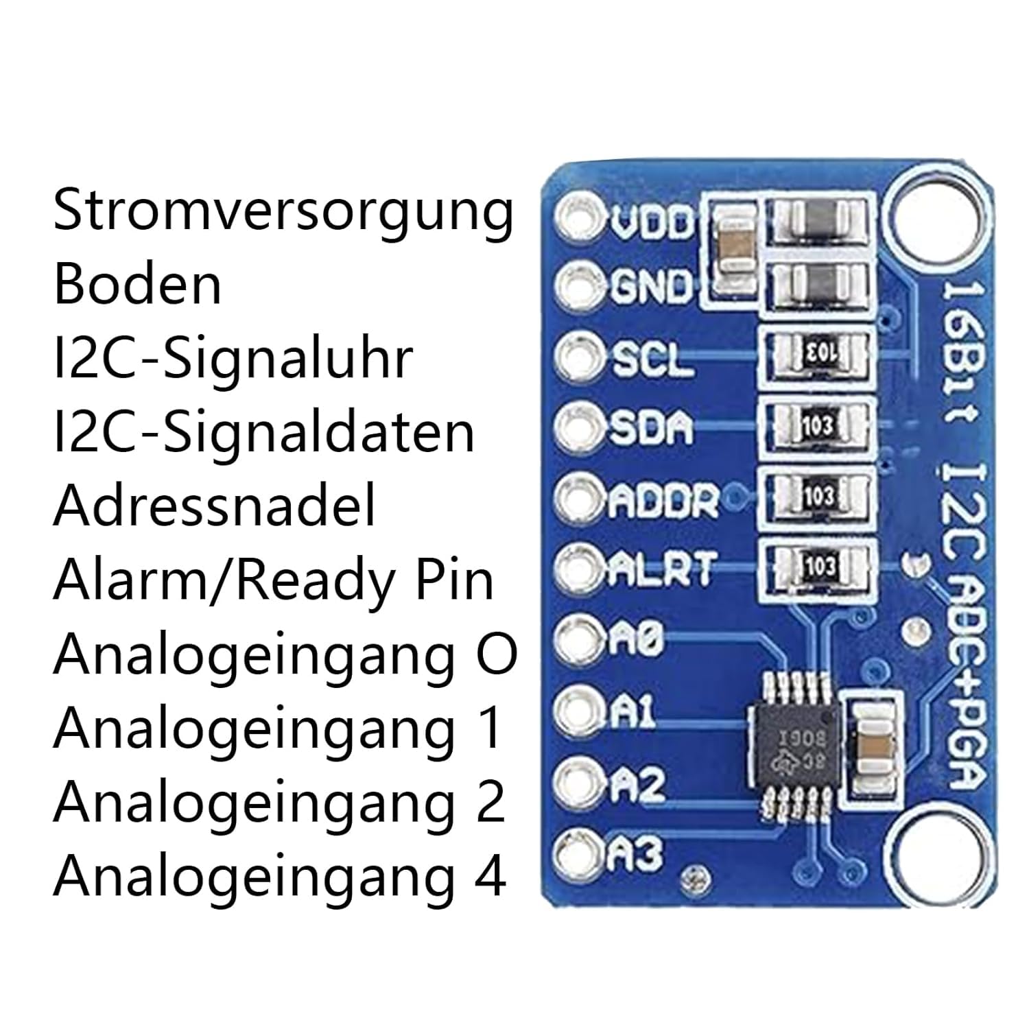 Hey Elektronik-Fans! Diese 3 ADS1115 Module sind richtig praktisch für eure Projekte. Mit 16-Bit Auflösung kriegt ihr mega genaue Messungen hin - viel präziser als die meisten Arduino-ADC! Das coole: Der integrierte PGA (Programmable Gain Amplifier) verstärkt kleine Signale, bevor sie umgewandelt werden. Bis zu 860 Samples pro Sekunde sind möglich, je nach Einstellung. Der Spannungsbereich geht von 2.0V bis 5.5V, also perfekt für 3.3V und 5V Systeme. Und das Beste: Die Dinger verbrauchen nur lächerliche 20μA - ideal für Batterie-Projekte! Über I2C ansteuerbar, mit wählbaren Slave-Adressen. Ob für Sensoren, Messgeräte oder portable Projekte - mit diesen Modulen macht Entwickeln richtig Spaß. Einfach mal ausprobieren - du wirst über die Genauigkeit staunen!